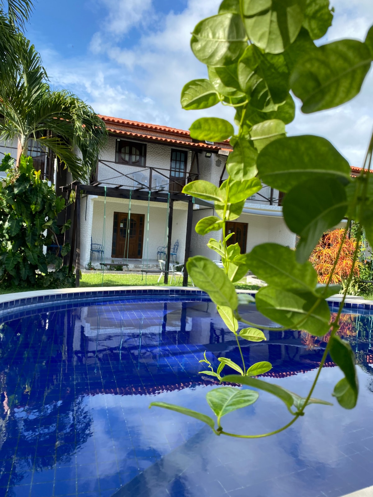 This cozy beach style home is just 150m (3 minute walk) to Tabatinga II beach, just south Jacuma, near Joao Pessoa, PB. Renovated in 2024, there are 4 suites for 13 guests. There is a front porch area for outdoor dining, socializing, or just relaxing in a hammock. There is a front yard pool and a BBQ hut with freezer, sink, table, and BBQ. The living room has a projector and a 5.1 surround sound system making it also a home theater through the disc player. The driveway will fit 4 cars.