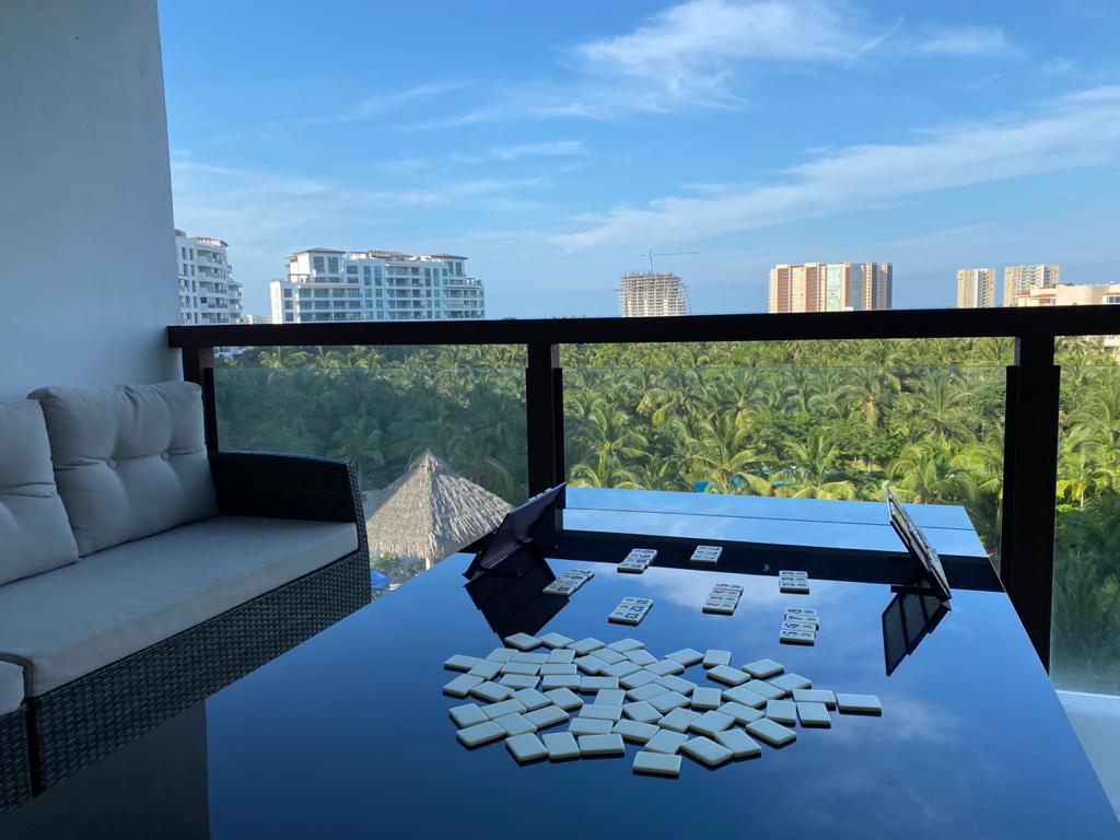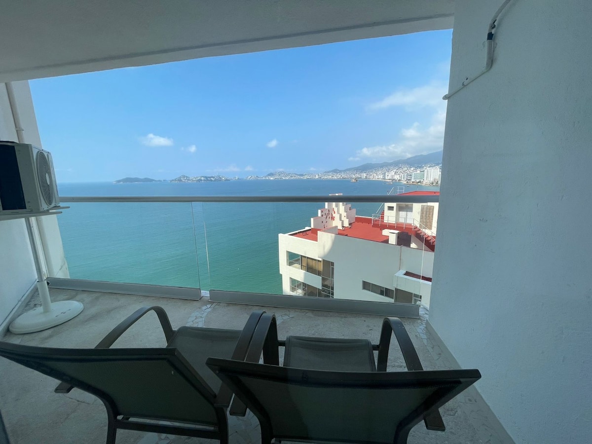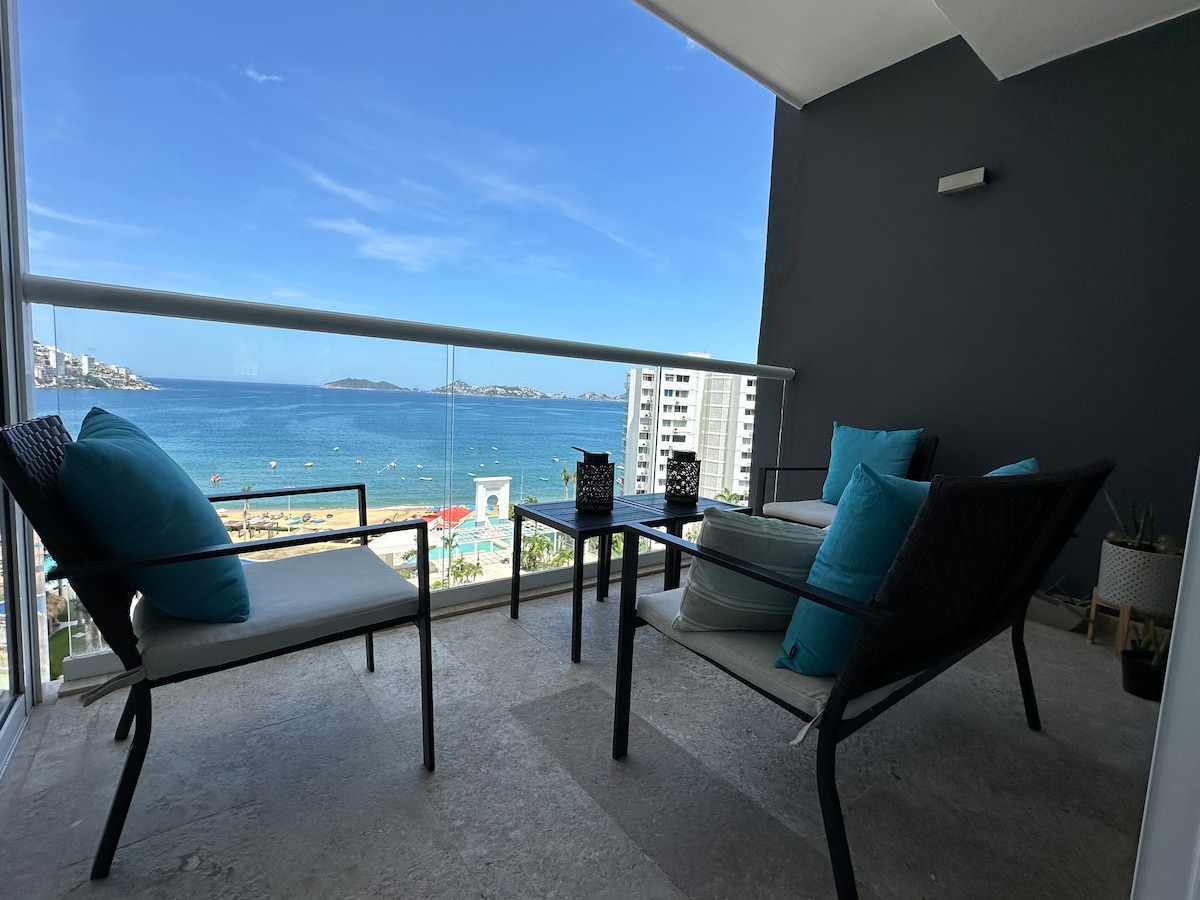 ¡Reabrimos, te esperamos con mucho gusto! Disfruta nuestra alberca y acceso privado a la playa. ¡Perfecto para vacaciones o home office! Balcón con vista increíble a la bahía. WiFi en el departamento y zonas comunes. Pantalla Smart lista para Netflix, Prime Video, etc. Espacio de trabajo en la habitación para leer o trabajar con tu laptop/tablet. El departamento está en excelentes condiciones. Aunque el condominio está en remodelación por el huracán Otis, todo es funcional.