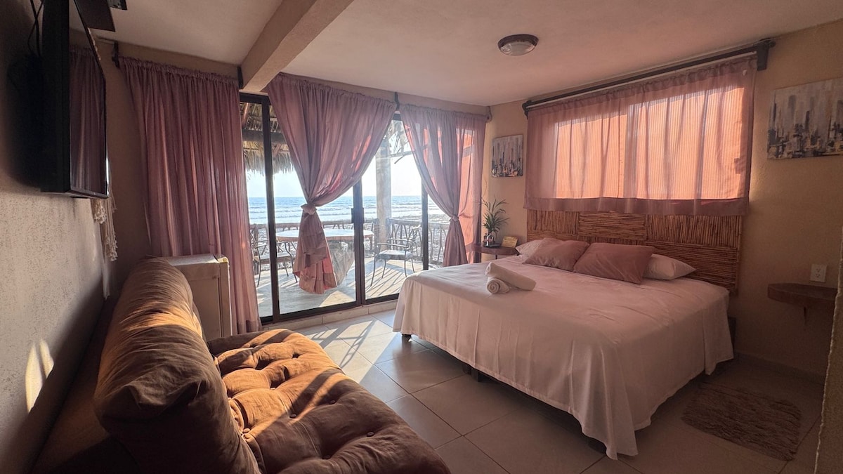Disfruta una estancia única frente al océano Pacífico 🌊. Nuestra habitación combina comodidad y elegancia con acceso directo a la alberca y al jardín. Perfecta para parejas que buscan relajarse con el sonido de las olas y los atardeceres más espectaculares de Pie de la Cuesta. 👉 Este anuncio corresponde a una de nuestras habitaciones; revisa nuestros otros anuncios si buscas diferentes opciones de hospedaje.