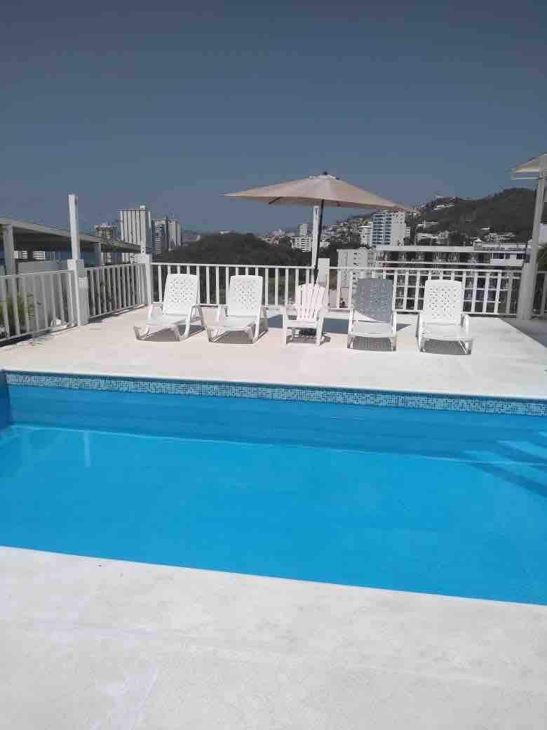 The apartment is a 3 bd 2 bth fully equipped with a kitchen, living room, bar area and balconies. The rooftop has a pool with a bathroom, lounge chairs, a table and electric connection. The building is in a safe and friendly neighborhood 4 blocks away from the Costera, where you can find a lot of restaurants, nightlife and stores walking distance. The beach access is really close so you can enjoy a day in the beach and watch one of the best sunsets in Acapulco.