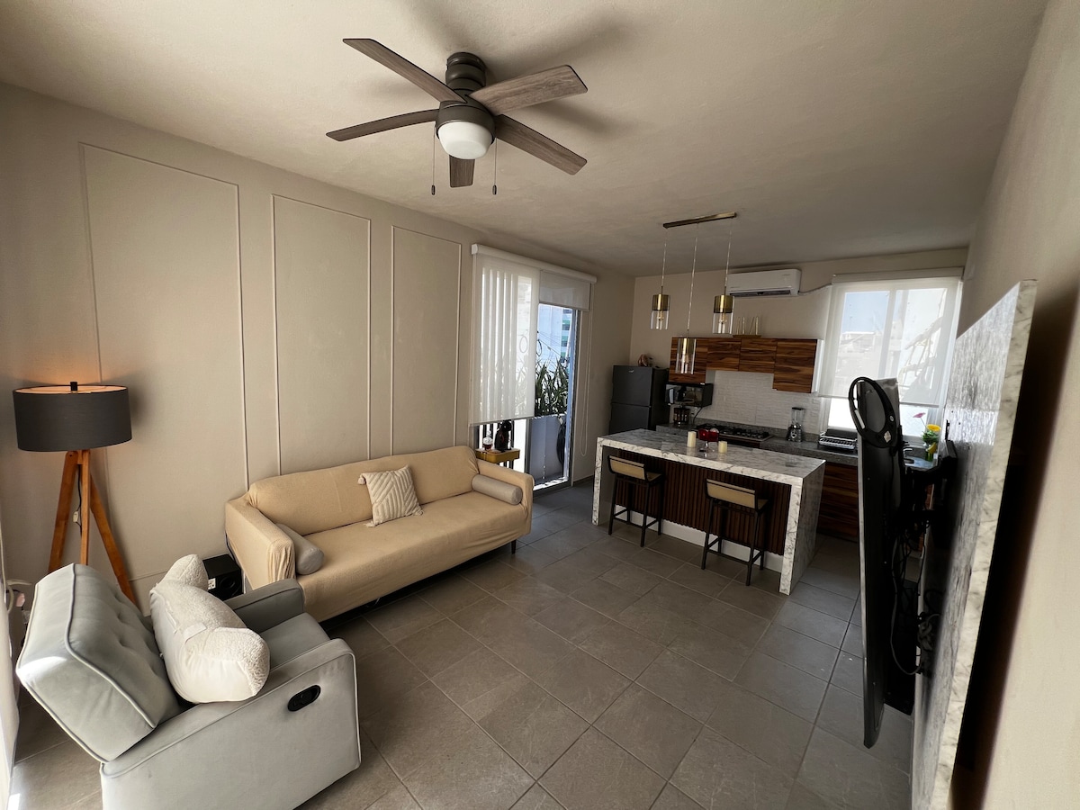 Precioso loft recién remodelado, cuenta con vista al mar, ubicado en el piso 12 donde podrás disfrutar de la brisa marina y el suave murmullo de las olas harán de tu estancia una gran experiencia. Cuenta con una gran alberca y hermosos jardines . Tiene acceso directo a la playa . El condominio cuenta con toldos, sillas y camastros en el area de la playa .Ubicado estratégicamente a una cuadra de costera,alrededor hay bancos, restaurantes,transporte publico .No cuenta con estacionamiento.