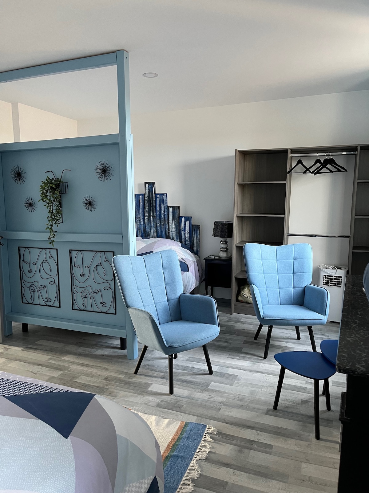 Hózhó Tempo est un lieu de vie & de villégiature atypique, écofriendly, slowlife & chill, qui vous invite à ralentir le rythme pour vous ressourcer, tout en goûtant à la douceur de vivre du Lot-et-Garonne. C’est dans un corps de ferme restauré, au coeur de son parc aux arbres centenaires, que nous vous proposons Sous les toits, un espace de 66 m2 avec 2 chambres, un salon, une SDB, une entrée privative + un espace kitchenette et tv partagés, des petits-déjeuners, un espace mieux-être, etc.
