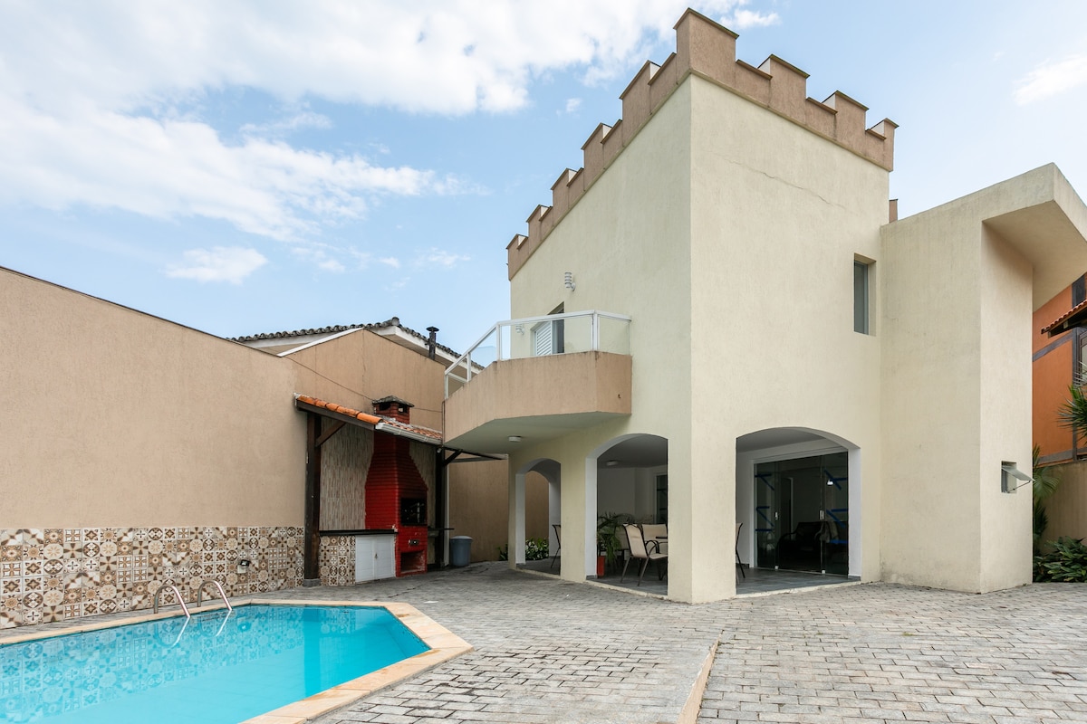 瓜鲁雅(Guarujá)的普通民宅,带游泳池,距离Guaiuba海滩400米