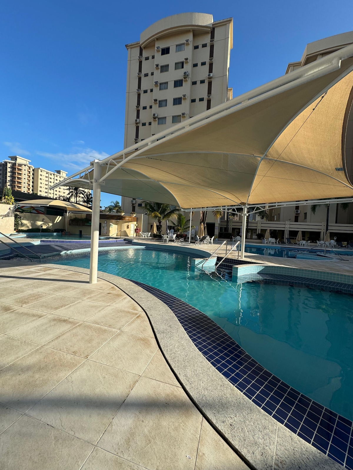 O Residencial Parque das Águas Quentes é um dos únicos com águas termais NATURAIS, ambiente familiar, e está situado no centro hoteleiro, em frente ao Riviera, Clube Privê e Singapura Shopping 🤩. Com certeza, é a melhor localização da cidade de Caldas Novas 🤗. Possui Parque Aquático privativo, com piscinas naturais de águas termais, sauna, academia, brinquedoteca, sala de jogos, churrasqueiras, Restaurante privativo, lanchonete, bar molhado e garagem coberta. ***Roupa de cama à parte.