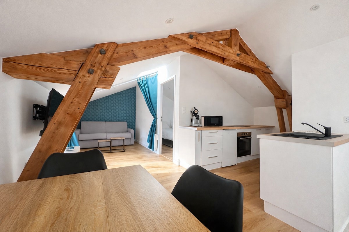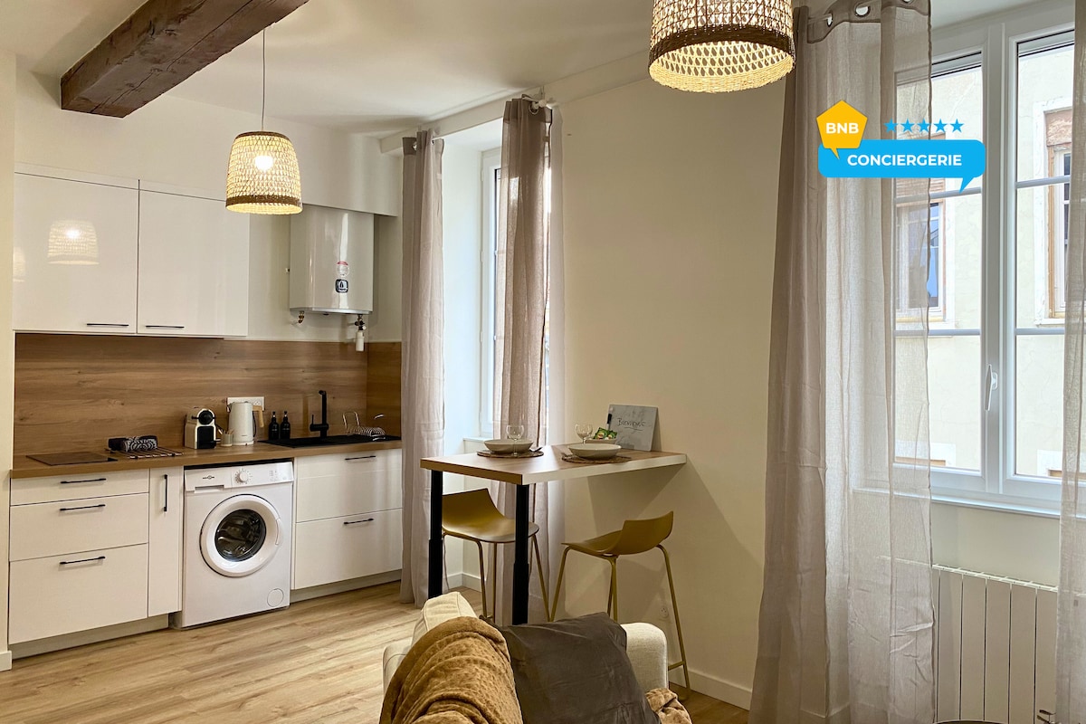 Bienvenue dans notre appartement au cœur de Vienne, à 30 mètres du Temple Romain. Situé au premier étage d’un immeuble plein de charme, ce grand T2 de 60m2 a été rénové avec soin. Profitez de l'hypercentre avec ses commerces, restaurants, et sites emblématiques à proximité : théâtre antique, cathédrale Saint-Maurice, musée des Beaux-Arts. Un BABY-FOOT pour les moments de jeu et une grande TV (125CM) vous permettront de vous détendre entre les visites de la belle ville de Vienne.