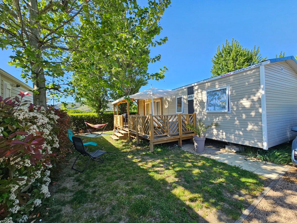 Description : A Condrieu 69420, dans camping 4 étoiles , -les Rives de Condrieu - a 30 minutes au sud de Lyon au bord du RHÔNE (rive droite) Particulier loue mobil home Moana 2019 40m², pour 6 personnes ,de février a novembre avec climatisation réversible , terrasse couverte de 19m² , Cuisine toute équipée , wc , sdb Deux chambres + canapé convertible . Draps , linges de toilettes , lit et chaise bébé fourni GRATUITEMENT . Les animaux de compagnie sont accepté Tarif variable selon les saisons