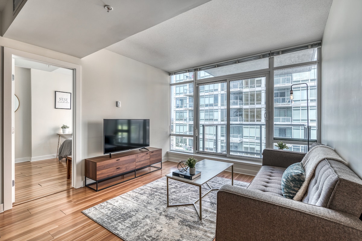 Enjoy a tastefully decorated condo, centrally located in downtown Calgary. The condo offers unique amenities such as; - Rustic Japandi Interior Design Theme done by a local Interior Designer. Each piece was selected with comfort, ease of use and design theme in mind - Offering unique amenities such as a rooftop pool, gym, underground parking, private patio and more - Fully functional kitchen, perfect for cooking - Three sleeping spaces (two queen beds + double sofa bed) - Cable + Hig