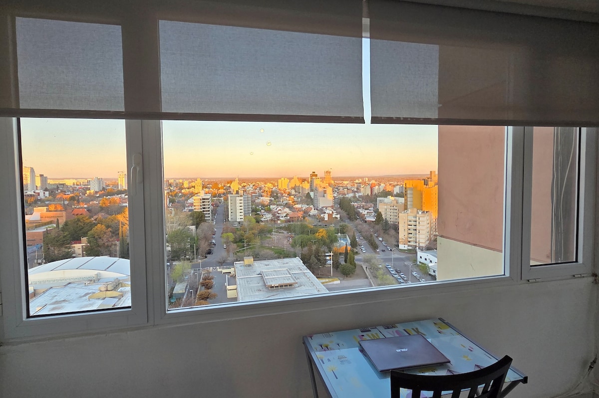Departamento cálido y amueblado, con vistas panorámicas desde una de las principales calles de la ciudad. Disfrutá de un espacio luminoso, equipado con todo lo necesario para una estadía cómoda y placentera. Cuenta con cochera privada y acceso a la terraza, ideal para relajarte. Ubicación inmejorable, cerca del centro, restaurantes y el río Neuquén. Perfecto para viajeros, parejas o estadías de trabajo. Confort, vistas espectaculares y excelente ubicación en un solo lugar. ¡Te esperamos!