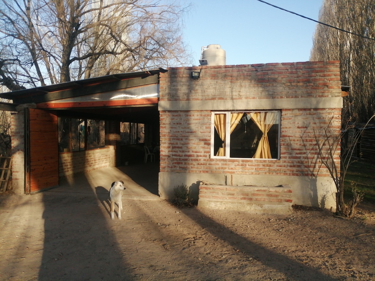 Alquiler diario de casa estilo rústico en Arroyito, a orillas del Río Limay Descripción: 🏠 de 100m² en terreno de 500m², ubicada a orillas del Río Limay con muelle. Ideal amantes de la naturaleza. Características: - 2 habitaciones, 1 en suite con vestidor y placard (cama 2 plazas + 1 catre + 2 camas 1 plaza) - Parrilla - Aire acondicionado - 2 cocinas: una con estufa a garrafa y otra con estufa a leña - Estufa hogar y Barra desayunadora - Vajilla p/ 6 personas El lugar no cuenta con gas