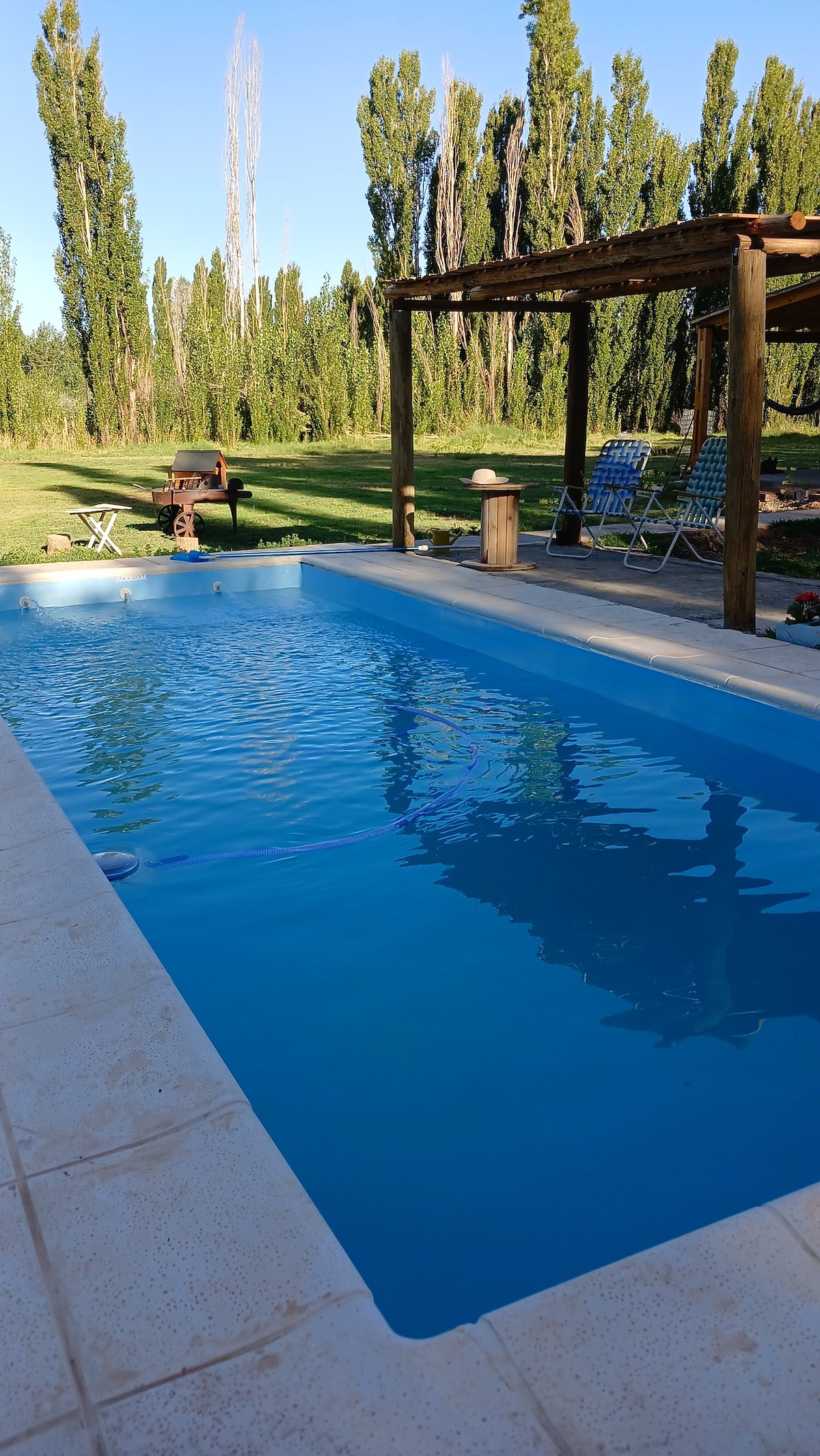 Relájate con toda la familia en este alojamiento donde la tranquilidad se respira. Quincho Limay, nuestro predio está ubicado a 500 metros del Río Limay, lugar con una tranquilidad única, para relajarte, descansar, trabajar... Contamos con una cabaña equipada para 4 personas, salón equipado para 30 personas y piscina.