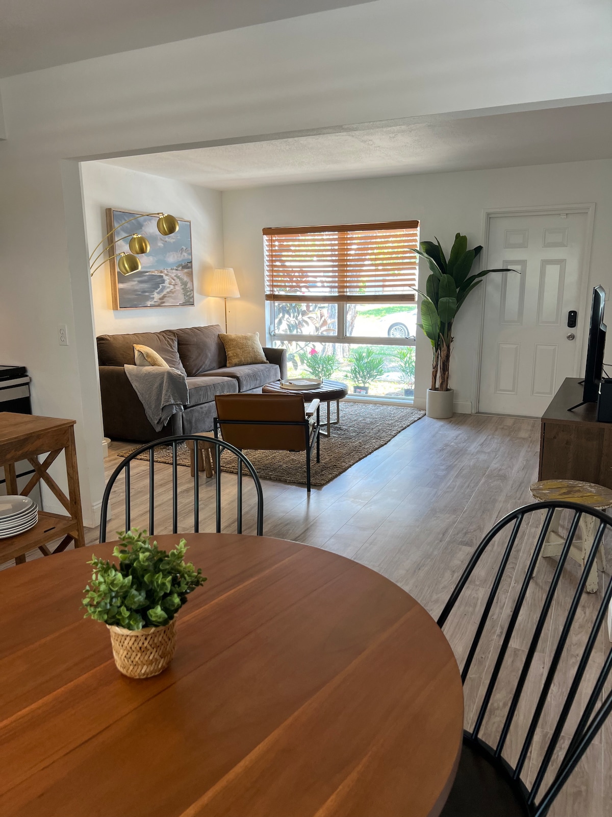 Kick back and relax in this calm, stylish space. This updated one bedroom suite apartment contains a smart TV in the bedroom and living room. The fully stop kitchen is designed to make you feel at home. Enjoy your morning coffee or a nice night under the lights on the private patio. The suite is located only a short drive from downtown, parks, local, restaurants, and beaches. we’re always available to answer questions and concerns. Reserve now for an unforgettable stay.