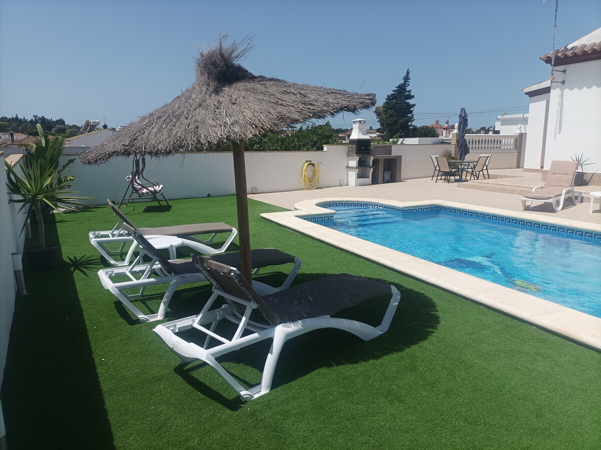 Beautiful villa near the beach in the Roche, Conil (Cadiz) We rent all year round (for fortnights in July and August) and can accommodate up to 8 people. There is WiFi Internet and Netflix Plus, 2 smart TVs, one 70'' screen. The house, 150 m2 (200 including terraces) and 600 m2 of garden, is a typical Andalusian tile construction totally and perfectly equipped and decorated with style, for maximum comfort and enjoyment. It is only 50 meters from the beach. So close that you can go barefoot.
