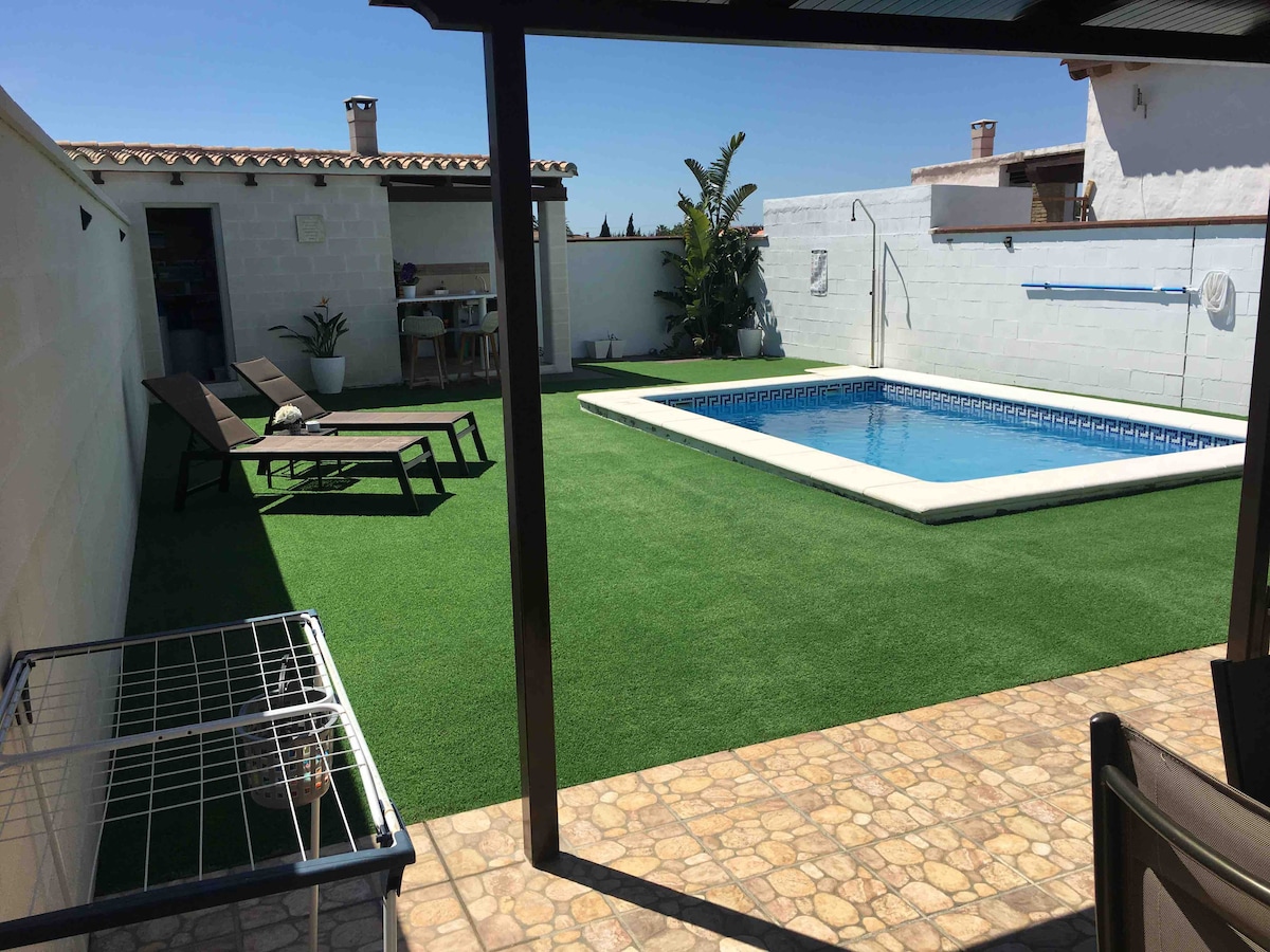 casa solmayor Conil de la Frontera es un pareado con mucho espacio situada en la mejor urbanización de Conil con acceso directo a una cala con playa de arena. dispone de un espacio y jardín privado e intimo con hamacas , alberca-piscina y rincones con mesas y sillas exteriores así como terrazas y azotea con vistas panorámicas para este invierno pida un precio especial larga estancia! deal para los que quieran trabajar desde casa en un entorno sano y seguro.
