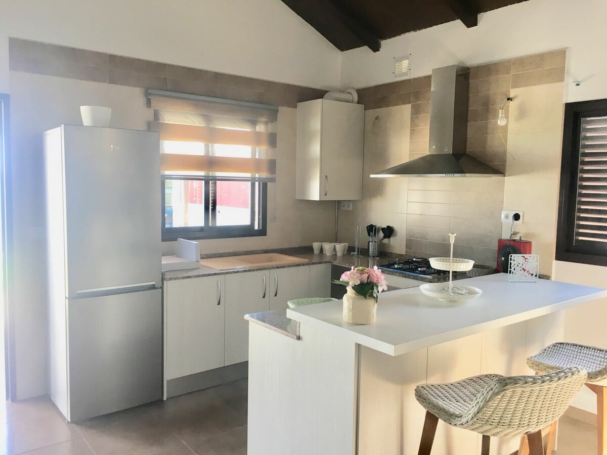 Estupenda villa Buganvilla, ideal para familias con niños por su piscina vallada y jardín semi tropical, muy cerca de la playa de Fuente del Gallo y Cala del Puntalejos, decorada con encanto y aire rural, Dispone de aire acondicionado en salón y dormitorio principal y calefacción en salón y dormitorios. Smart tv., Sat., Wifi. La casa se encuentra en una zona rural y es recomendado tener coche.