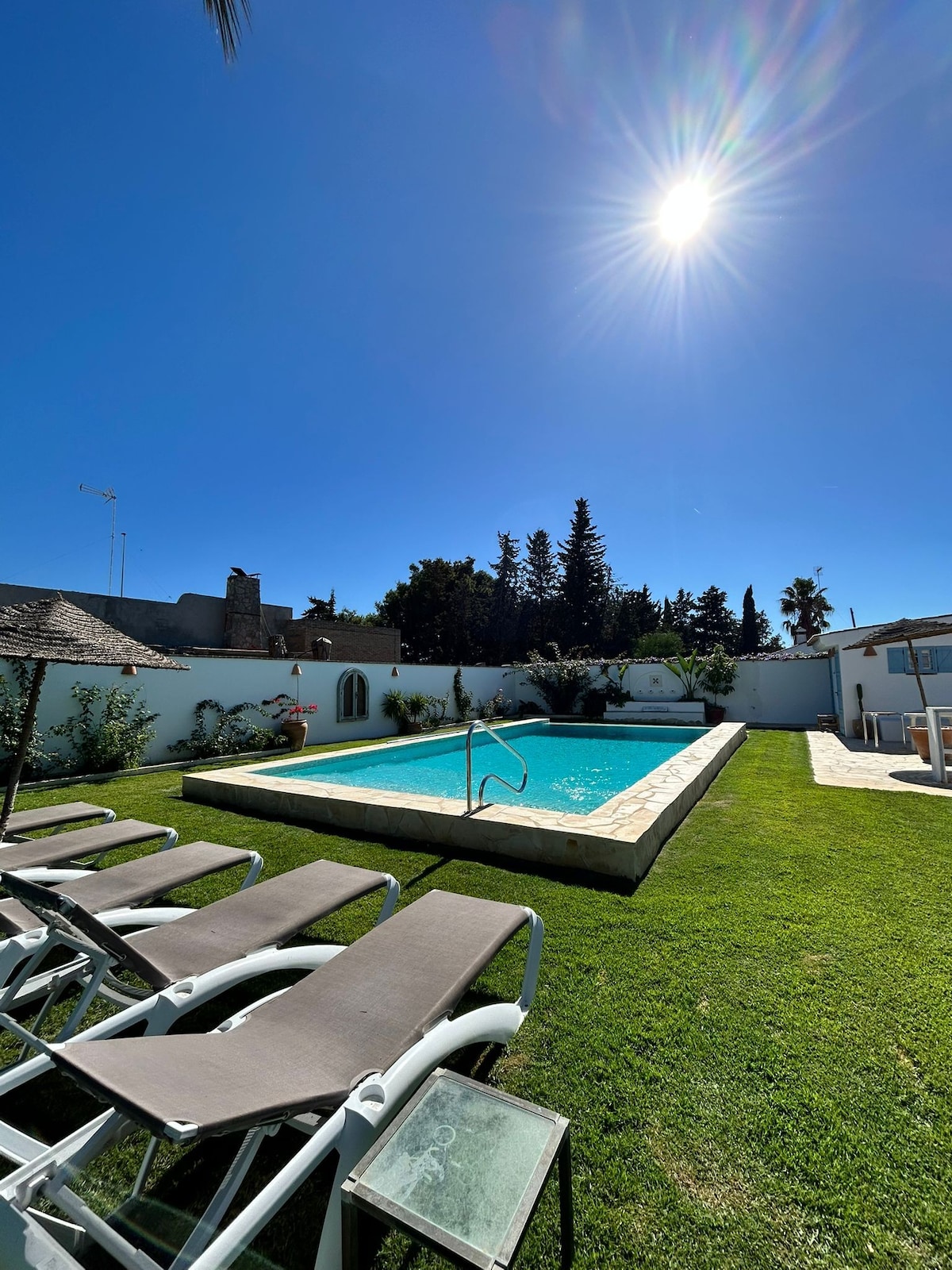 Beautiful villa near the beach in the Roche, Conil (Cadiz) We rent all year round (for fortnights in July and August) and can accommodate up to 8 people. There is WiFi Internet and Netflix Plus, 2 smart TVs, one 70'' screen. The house, 150 m2 (200 including terraces) and 600 m2 of garden, is a typical Andalusian tile construction totally and perfectly equipped and decorated with style, for maximum comfort and enjoyment. It is only 50 meters from the beach. So close that you can go barefoot.
