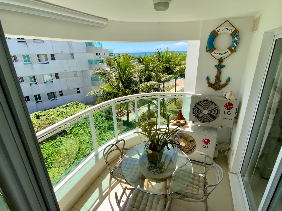 Apartamento de 50 m² com 1 quarto, sala, cozinha e varanda, de frente para o mar e para a famosa Praia de Ponta Negra. Trata-se de um flat extremamente confortável e aconchegante, aparelhado por ar condicionado, Smartv de 50 polegadas com acesso à Youtube e Netflix, com TV à cabo e internet, além de contar com uma belíssima vista para o oceano e morro do careca. A cozinha conta com todos os utensílios de louça e talheres, geladeira inox, cooktop, microondas, cafeteira e mesa de jantar.