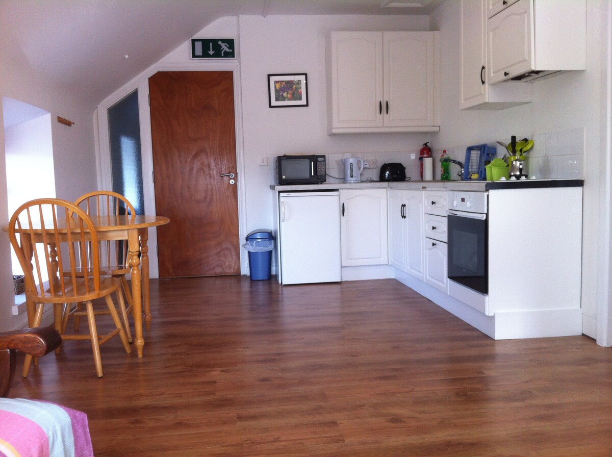 Self contained loft 1 bed sleeps up to 6 people upstairs is open planned, 1 double, 2 single & pullout mattress. Down stairs seating area with full kitchen, washing machine, tumble dryer, also shower-room. On request theres a choice of private king size bed en-suite with bathtub/shower. Outside sheltered sitting/eating area. Hot tub is added extra payable on arrival. kayaks available for hire with buoyancy aids, all persons must be swimmers. Local attractions Cuilcagh mountain & caves.