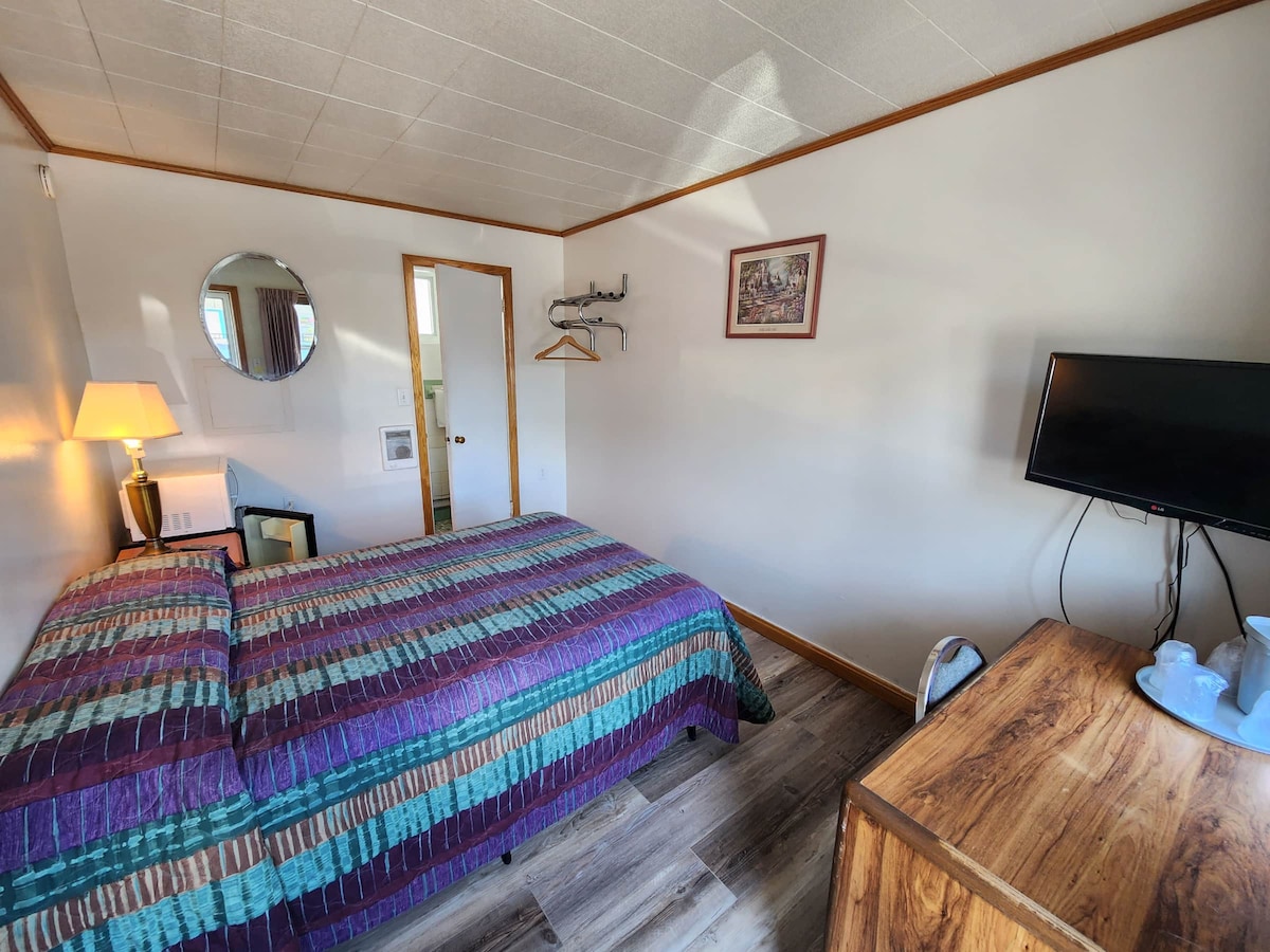 Newly updated room at Irish Cove Motel. Fun mix of vintage and modern. Off-street parking. Queen bed. Fridge, microwave and Keurig in each room. Cable tv and WiFi. Close to the lake, winery, Conneaut Lake Park and 15 minutes from Pymatuming. No smoking. Pet friendly with certain breed restrictions per our insurance policy: German shepherds Pit bull terriers Cane corsos Rottweilers Staffordshire terriers Akitas Mastiffs Great Danes Doberman pinschers *the outside will be updated by April 2022.