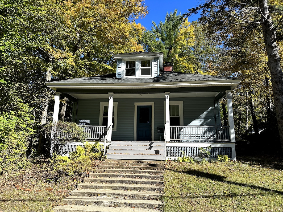 Superhost opens up Mountain Retreat. Village Camp sits in the heart of Stowe Village. Property is literally steps away from areas best restaurants, bars, shopping, ice cream shops, shuttle stop to ski area, trailhead for hiking and biking, and the Stowe Bike Path. There's on sight parking. This bungalow style home is all brand new, and is furnished with Vermont handmade objects. Village Camp sleeps up to 6 guests on organic bedding, has a flat screen TV, and makes a great basecamp in Stowe.