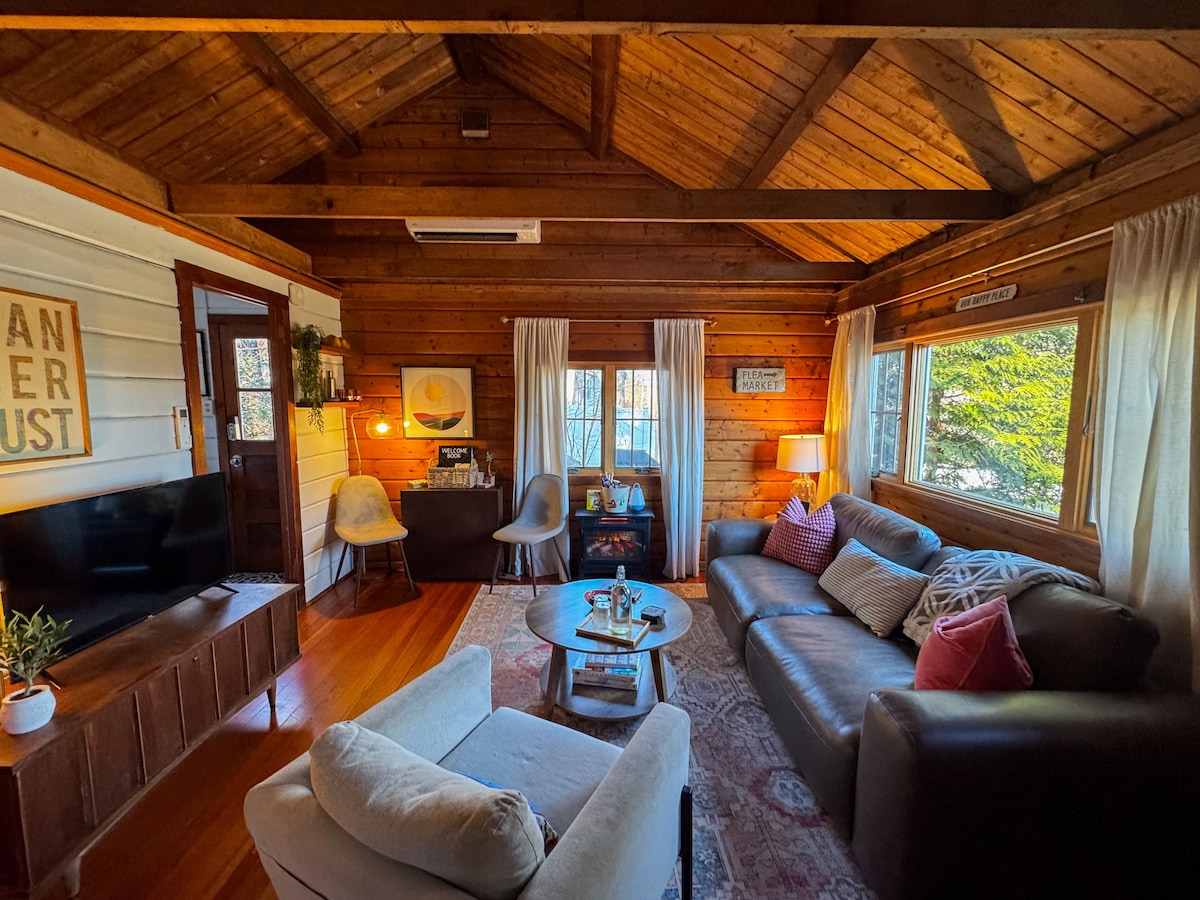 Step into the stylish and peaceful 3BR 2.5BA cabin in a historic Merryall District close to shops, lakes, hiking trails, farms, and downtown New Milford and Kent. Explore the picturesque area and the exciting attractions, or lounge by the fireplace or the fire pit in the magical yard. ✔ 3 Comfortable Bedrooms ✔ Living Room & Sunroom ✔ Wood Burning Hot Tub ✔ Chef's Kitchen ✔ Office/Library ✔ Books, Vinyls & Games ✔ Porch, Yard & Fire Pit ✔ Smart TVs ✔ High-Speed Wi-Fi ✔ Laundry See more below!
