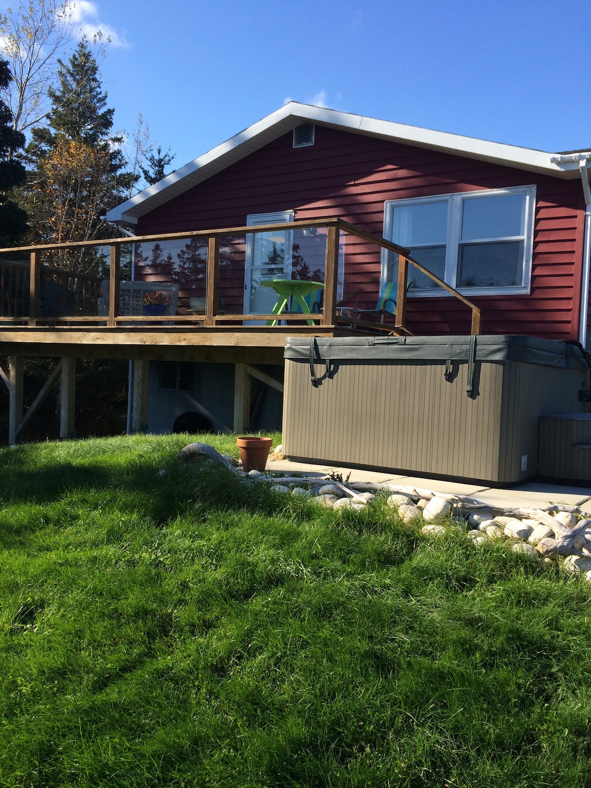 Our Small Cozy oasis offers all that you need to relax & enjoy beauty in nature from your private deck to Private hot tub. We are best suited for a couple. Not for Parties You are a short walk to an 18 hole golf course. A 15 min drive to salt marsh trails or surfing at Lawrencetown beach. We are a 20 min ride to Hfx & the airport. We have live tv & free movies. You can Fire up the BBQ relax on your private deck, enjoy a relaxing time in the hot tub or play games