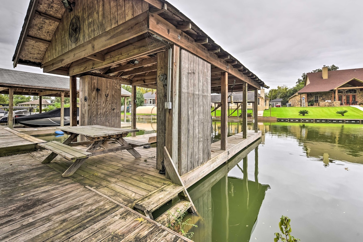 Lake views from almost every window ! Relax at the lake! Double covered deck to enjoy views in the shade. Fish from the dock or bulkhead. 2 car garage for keeping your car cool in the summer & dry when it rains. Wake up to the view of the water. Sunrises are amazing! Updated kitchen! Built-in gas grill. Secure guard gated neighborhood. Close to wedding venues & wineries, breweries & restaurants. Texas Renaissance Festival 24.5 miles, International airport 43 miles, College Station 55.2 miles.
