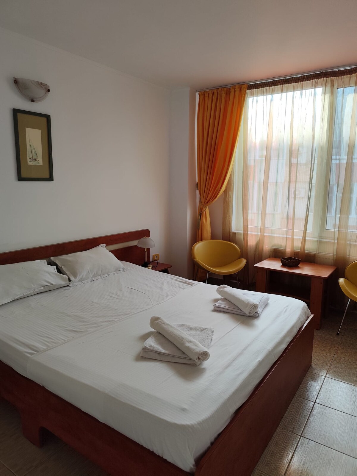 Camera Dubla situat intro zona linistita (pe partea cu lacul) si totusi in apropierea cuburilor din nordul statiunii (10 min de mers pe jos)... doar 5 min de mers pana la plaja si magazine, restaurante, market-uri...