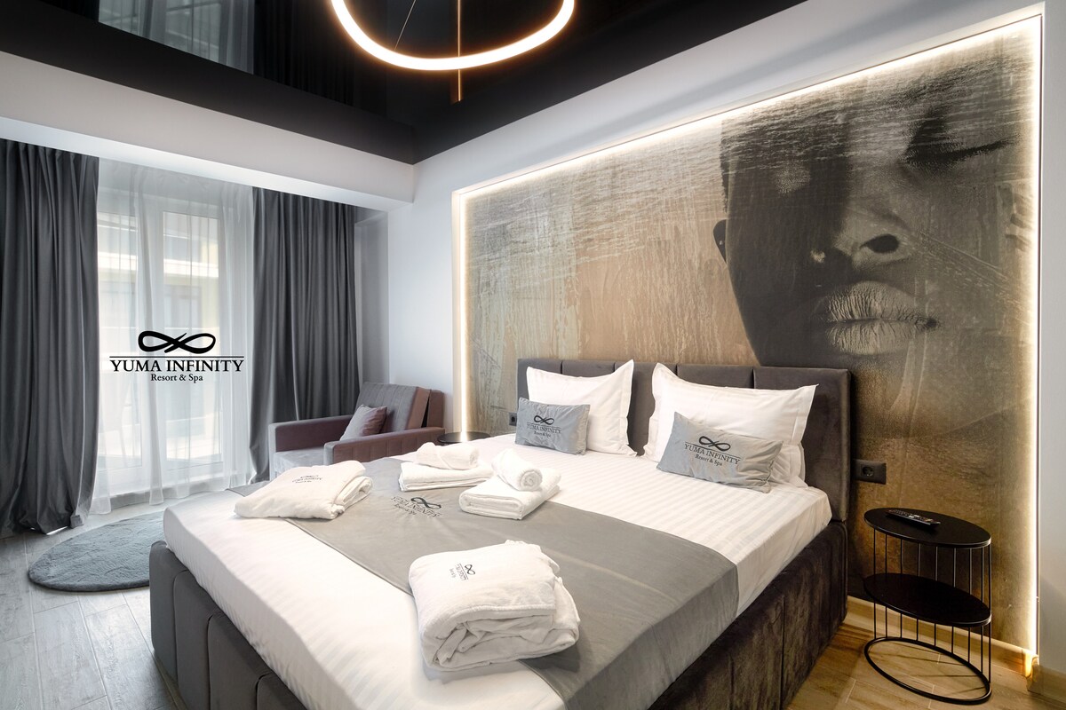 Boasting a seasonal outdoor swimming pool, a restaurant, and a bar,Yuma Infinity Pool and SPA features accommodation in Mamaia Nord with free WiFi and sea view. This beachfront property offers access to a balcony and free private parking. The apartment features terrace with sea view, 1 bedroom, 1 living room with sofa bed, bathroom, 2 smart TV with cable channels, a dining area, a fully equipped kitchenette, and a terrace with sea views. Our guests has free access to Spa Center.
