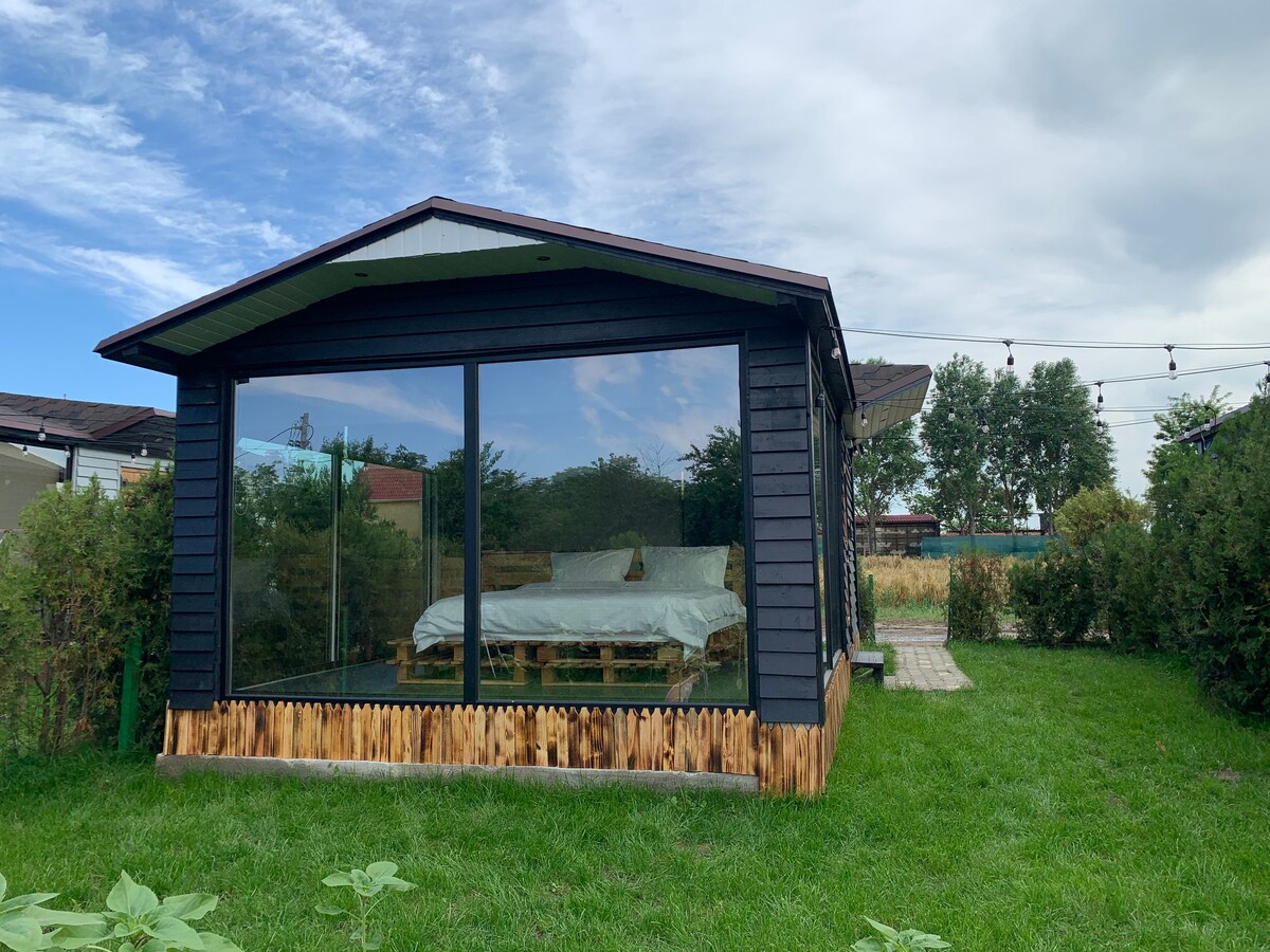 Căsuța mobilă poate acomoda între 2 și 4 persoane ( numărul de persoane se selectează din aplicație ) având un dormitor cu pat matrimonial și baie proprie, bucătărie utilată, living cu canapea extensibilă foarte confortabilă pentru 2 persoane, cu baie proprie. In fata căsuței este amenajata o terasa. Cele 3 căsuțe deținute sunt situate în aceeași curte.