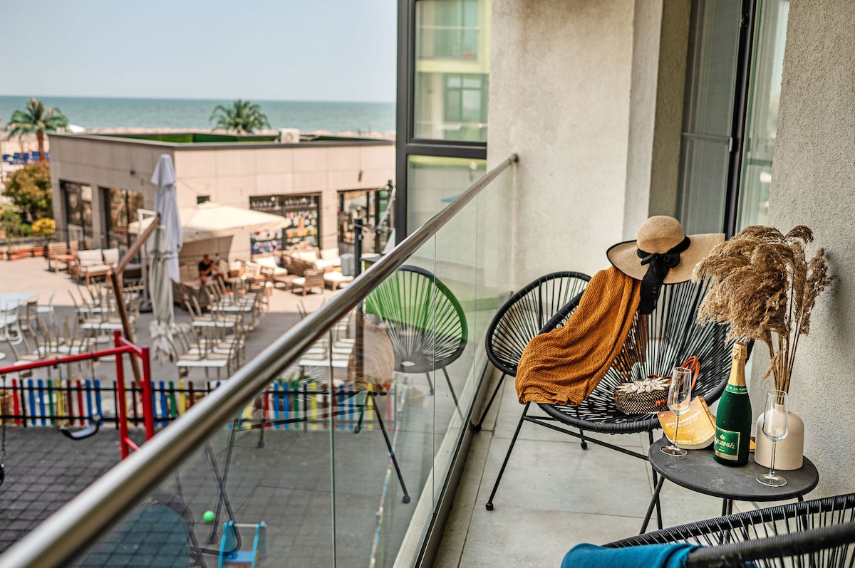 New Apartment with sea view and pool access is situated right next to the beach in Alezzi Beach Resort, in one of the best areas in Mamaia. You can sip your coffee in the balcony, watch the sunrise and feel the Black Sea breeze. The kitchen is fully equipped and you are welcome to cook. Nearby you can find the most diverse restaurants, coffee shops and clubs. Our guests will have also free access to the indoor and outdoor pools, fitness gym, SPA, playgrounds and pool for children.