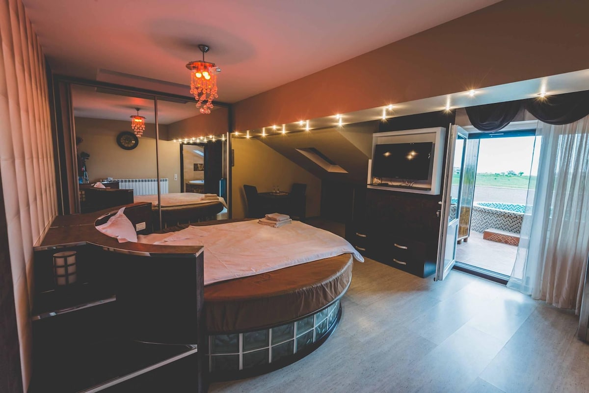 **iVAVev Is Us ByTheSea** is a luxury private villa located in Mamaia Sat, offering exceptional comfort and spaciousness. The villa features four bedrooms with ensuite bathrooms and dressing rooms, an indoor living area, and a modern kitchen. Set within a lush 600m² garden, it provides a wonderful sanctuary to enjoy with friends and family. Located just 100 meters from the beach and nearby restaurants, our villa boasts all the modern comforts and is adorned with vibrant, rainbow-colored decor.