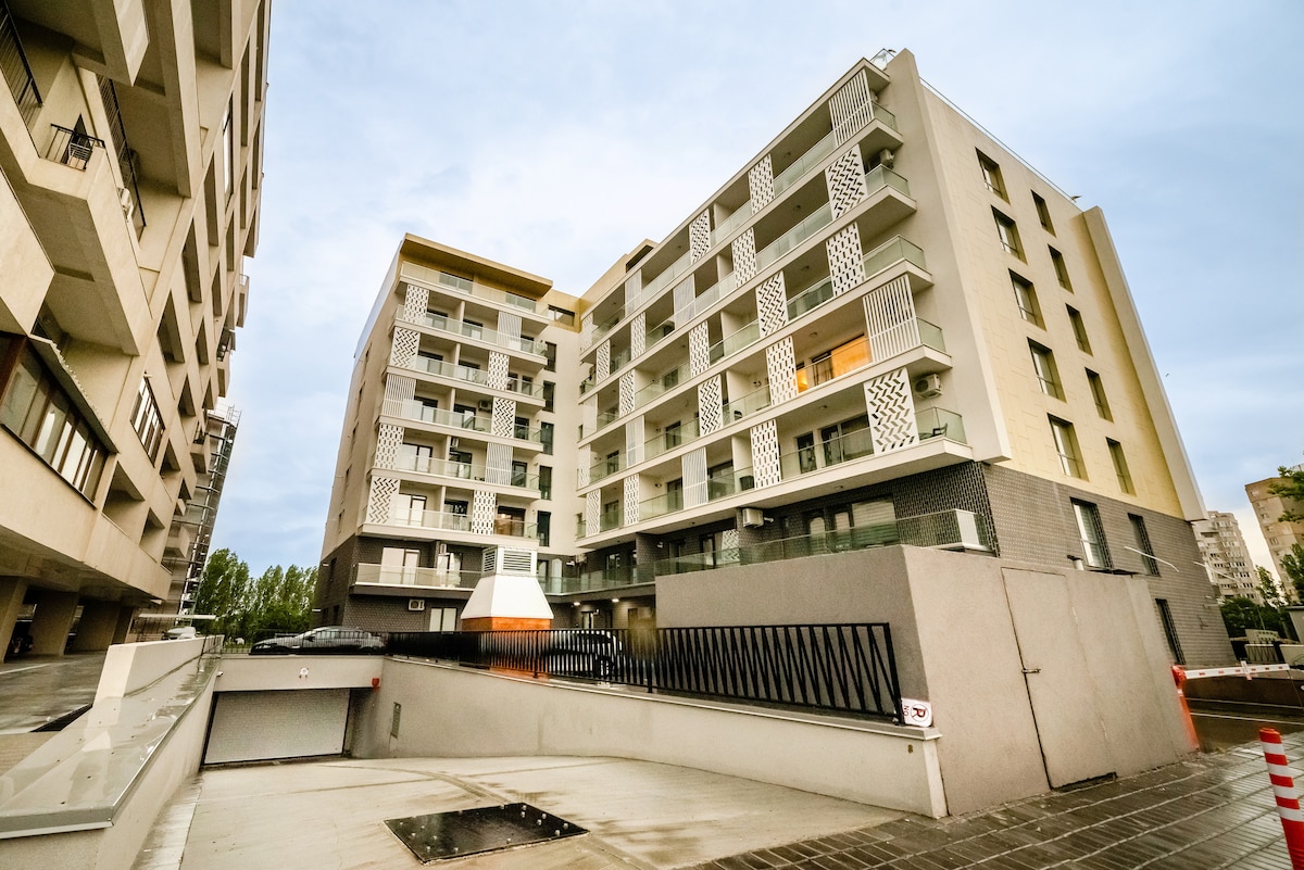 Lake View Apartment is located a 12-15 minute walk to the beach in Mamaia, close to the Holiday Village, free Wi-Fi, 2.4 km from City Park Mall, 6 km from Ovidiu Square and 2.3 km from Tom Shopping Center. The block dates back to 2015 and is 2.7 km from Gravity Park. Features 1 bedroom and a living room with a flat-screen TV, a fully equipped kitchen with an oven and a microwave, and 1 bathroom with free toiletries. Free private parking.