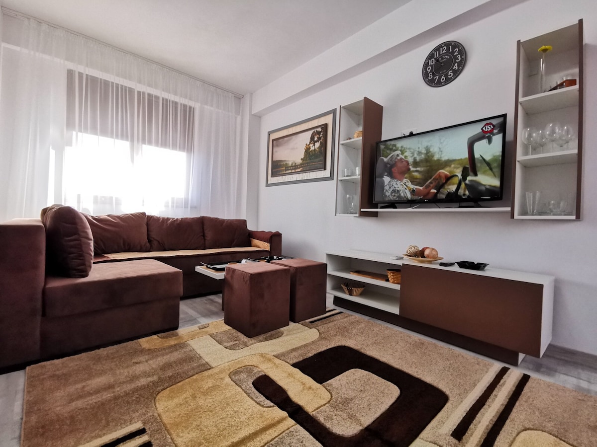 Modern, cozy studio just 5 minutes from 3 Papuci Beach ( zoom beach). Perfect for couples, it features a king-size bed, AC, kitchenette, flat-screen TV, and private parking. Ideally located on the main boulevard, with easy access to: • Supermarkets (Mega Image – 3–5 min walk) • Restaurants, cafés, and beach bars • Pharmacy and medical center nearby • Public transport and quick access to the city center Enjoy a peaceful stay near the sea, with everything you need for a comfortable getaway.