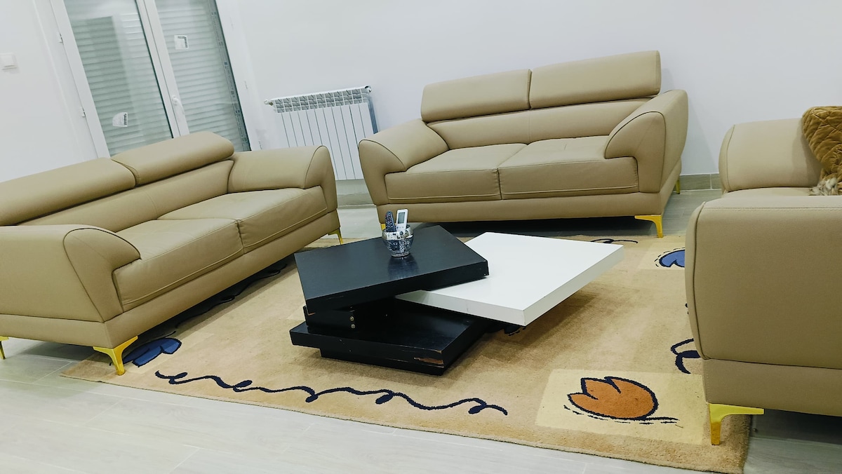 Bienvenue dans 𝕮𝖔𝖓𝖋𝖔𝖗𝖙 & 𝕰𝖑𝖊𝖌𝖆𝖓𝖈𝖊, un véritable havre de paix pour vos courts ou longs séjours. Spacieux et décoré avec goût, il offre un confort optimal avec des meubles modernes et des équipements de qualité. Idéalement situé dans un des quartiers les plus chics et calme de Constantine, ce dernier est proche de toutes les commodités, vous profiterez d'une ambiance chaleureuse et accueillante. Une connexion à internet très haut débit est disponible abonnement, IP-TV, VOD… etc