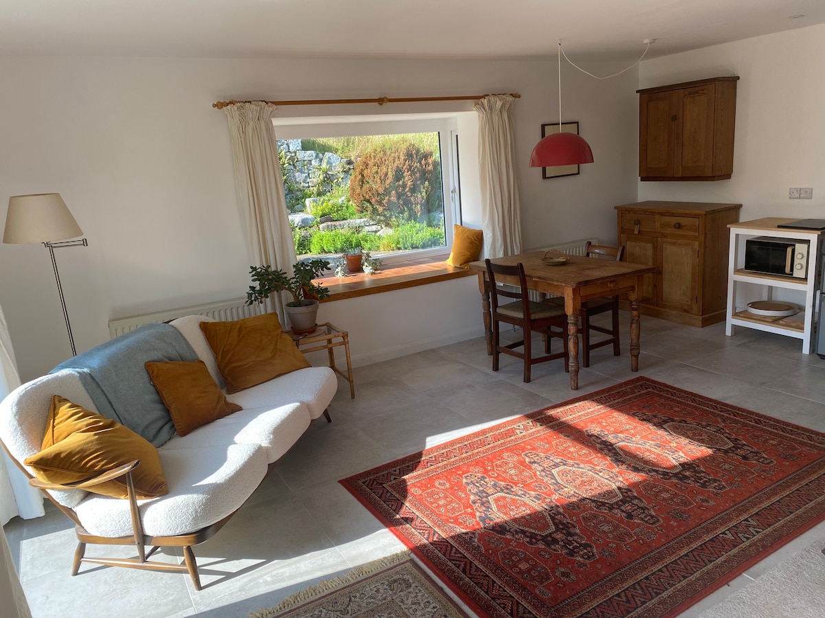 The Apple Loft is a beautifully converted cottage in the grounds of Tremayne House, providing accommodation for two adults. The Apple Loft has a private courtyard to the back, perfect for long meals on sunny evenings or dozing in the sun. The spacious bedroom and shower room are on the ground floor, with an open plan kitchen/living space on the first floor. The kitchen provides a great space for creating some delicious dishes, while the comfy sofa and log burner make evenings even more cozy.