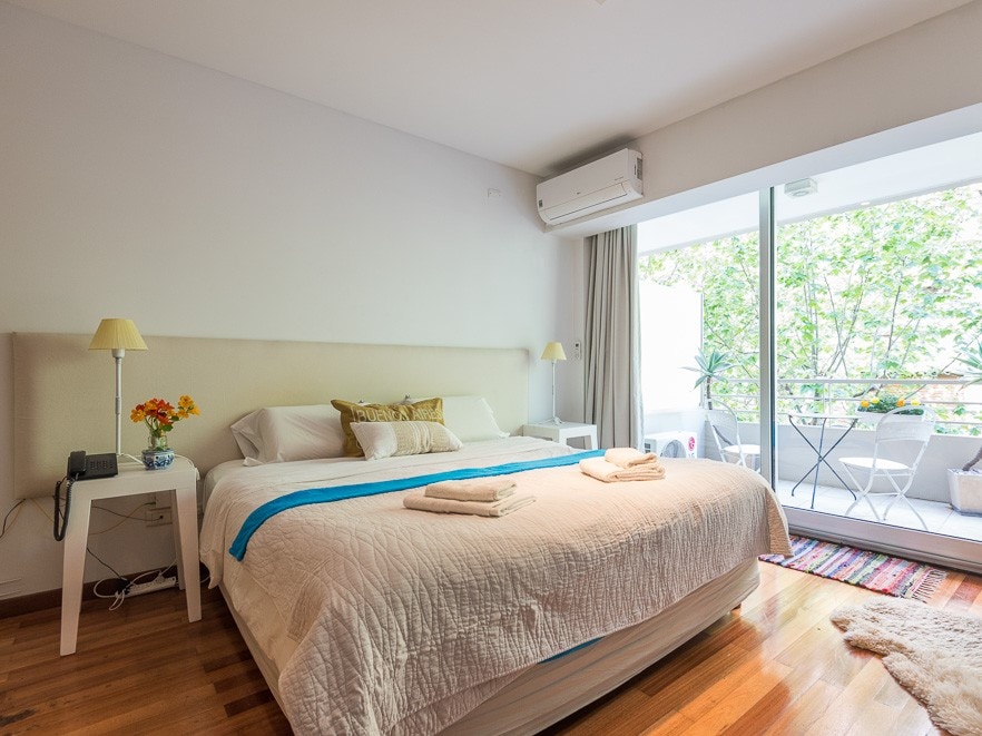 This bi-level 25th floor apt. in Palermo Soho is wonderfully spacious and is flooded with sunlight by day, thanks to its floor-to-ceiling windows looking out across the city Building with 24 security, pool open Nov 15 to Apr 15. Check in: 14PM & Check out 11AM. Arrival between 20PM and midnight has a late fee of usd20. Booking from the previous day allowed to check in as early 8AM. Check in between Midnight and 8AM is NOT possible. The apartment size Bed is 180 cm by 190 cm.