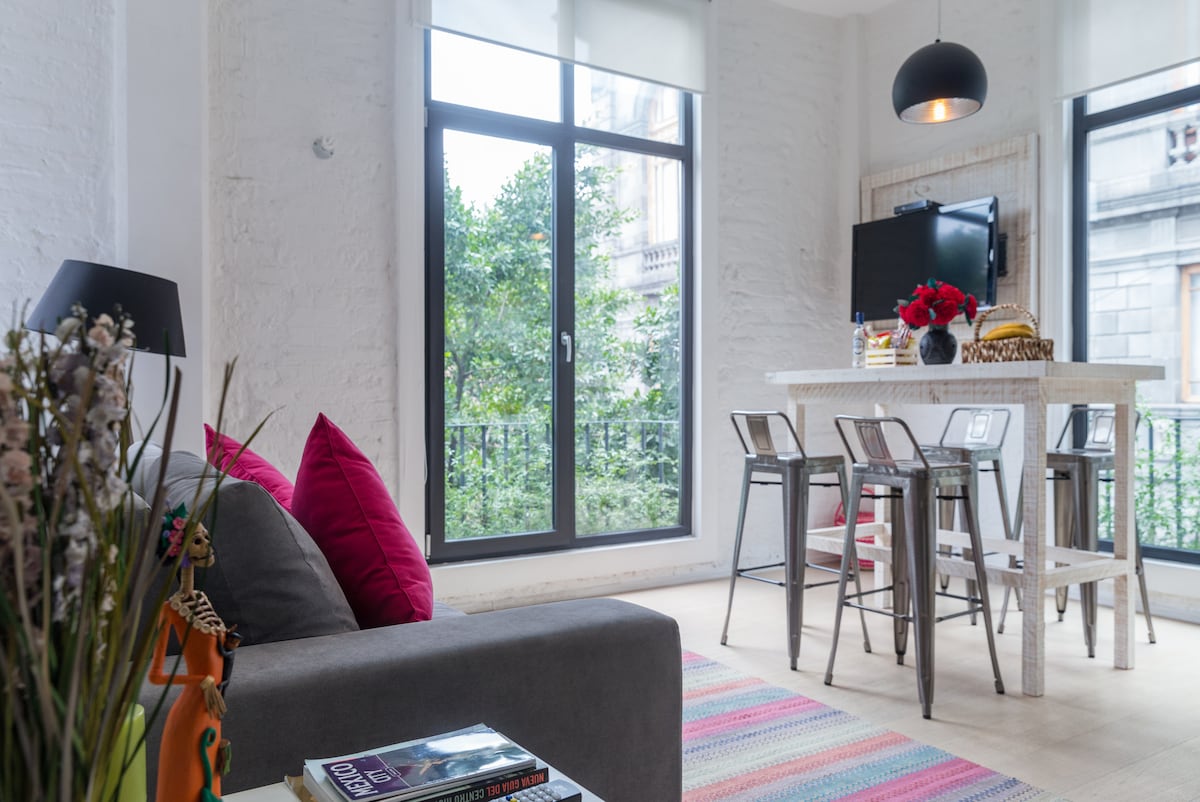 Beautiful loft in the heart of Mexico, in front of Alameda Central, the oldest urban park in the Americas; just a few steps away from Bellas Artes Palace, Latino Tower, Garibaldi Mariachi Plaza, museums, restaurants, and less than a mile away from the Zocalo, the Aztec capital Templo Mayor, and the Metropolitan Cathedral. *Not a quiet street or neighborhood. It’s full of life.