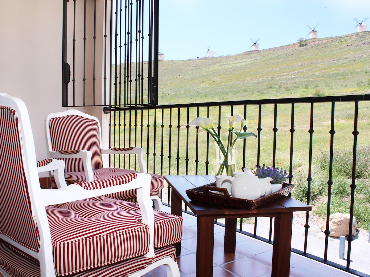 Te va a encantar mi lugar debido a el espacio acogedor, las vistas y la ubicación.. Mi alojamiento es bueno para familias (con hijos) y grupos grandes. La casa estructurada en torno a una galería y patios exteriores, se trata de un edificio de nueva construcción, con blancas fachadas, corredores con vigas de madera, amplios ventanales y aspecto rústico que la asemeja a las antiguas ventas o posadas manchegas, lugares que desde el siglo XV ofrecían el servicio de hospedaje en La Mancha-