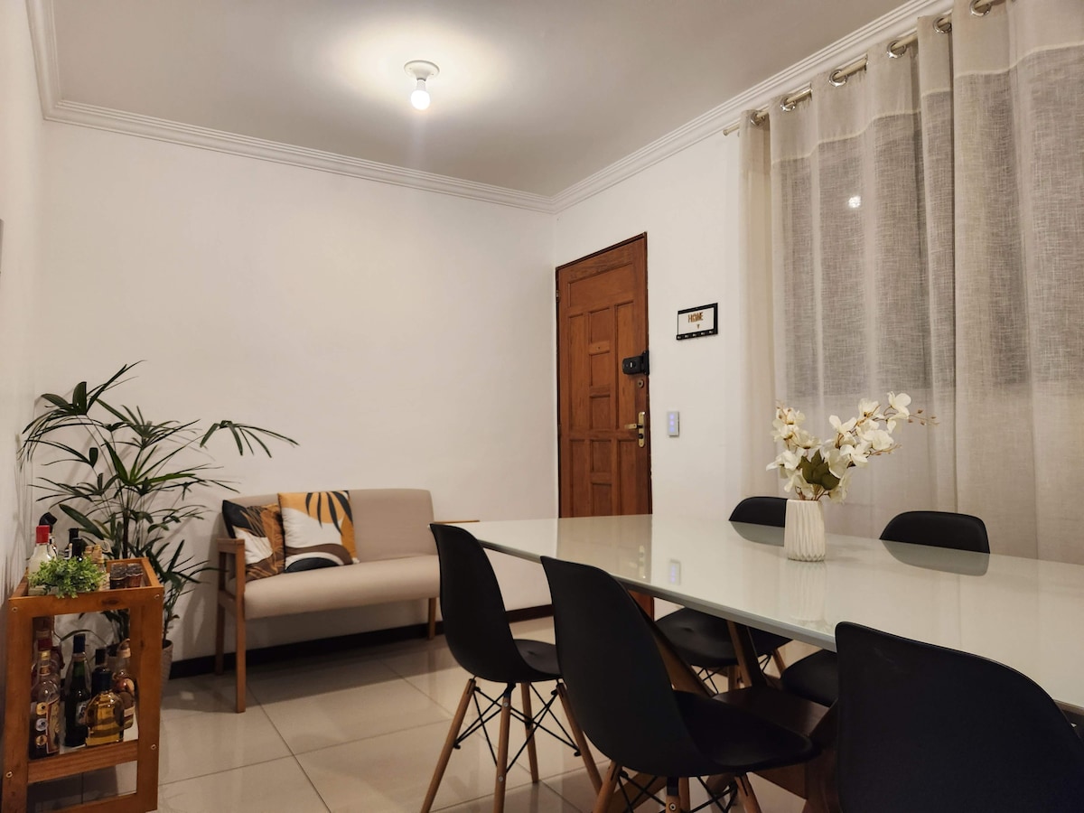 5-min walk to Arena MRV! Near malls, outlets & supermarkets. Sleeps 6 (1 double bed, 2 twin beds, 1 sofa bed). Full kitchen: AirFryer, coffee maker, microwave, blender & sandwich maker. We stock all essentials: water filter, coffee, sugar, salt, oil & spices. Apartment has Smart TV, Wi-Fi, safety nets, hairdryer, soap & toilet paper. We provide complete linens, towels, pillows & blankets. 24h security, 1 parking space. Easy self check-in using smartlock. No smoking or unannounced visitors.