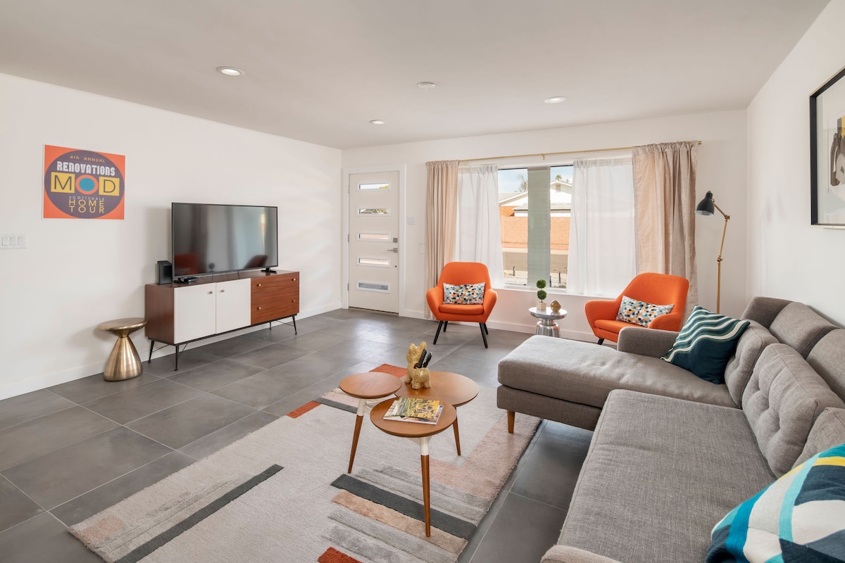 Welcome to "THE DON." A NEW Mid-Century Modern SHOWSTOPPER! Located in OLD TOWN Scottsdale, this newly remodeled, mid-century masterpiece will not disappoint! Enjoy the outdoor amenities which include heated 25'x12' pool, putting green, & BBQ. The open floor plan with exposed beams, 75" TV & a fully stocked kitchen will make your stay nothing short of spectacular. Please respect the house rules and the neighbors by abiding by our strict NO PARTIES policy.