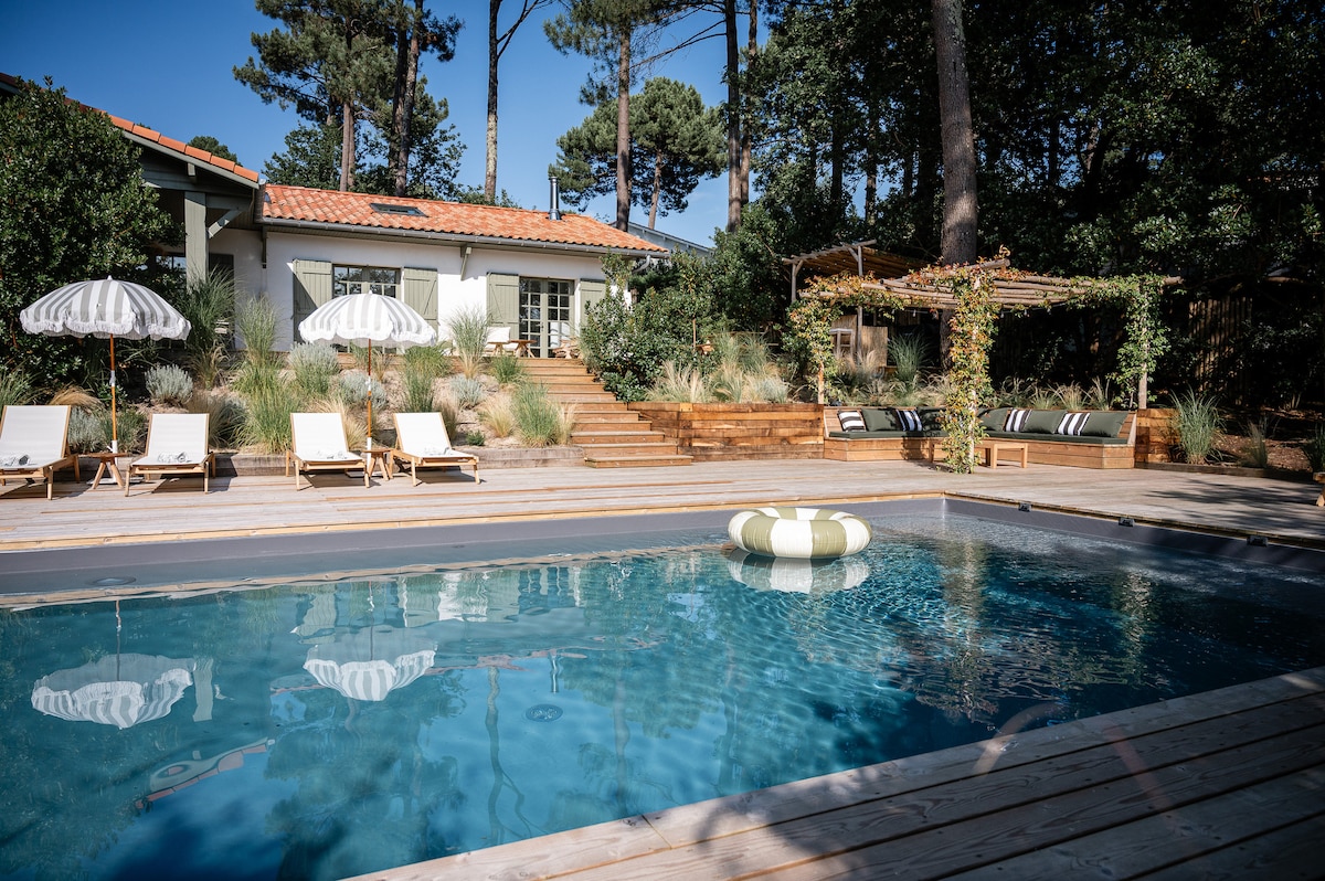 Véritable havre de paix situé à Labenne, la Villa Amani est 1 maison d'archi lumineuse & confortable. Vous apprécierez ses équipements de qualité & sa déco immaculée. Piscine & plancha sur terrasse de 100m² avec vue plongeante dans la forêt de pins.