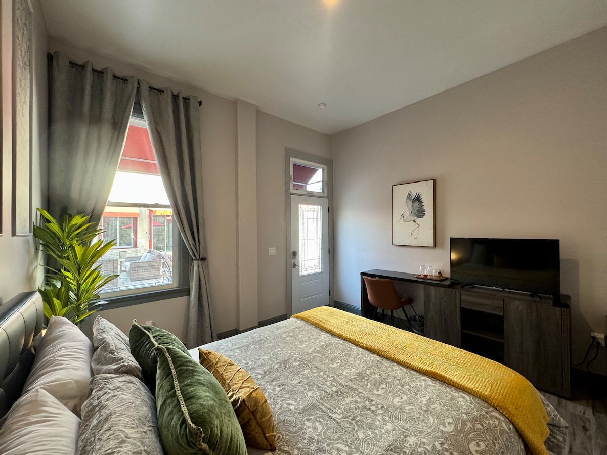 This beautifully appointed room opens into our flower-filled courtyard 🌸 and features two extra-long double beds 🛏️🛏️ (queen-length). Located in a small, family-run motel in the Marina District, near 🏙️ Cow Hollow and Chestnut Street’s shops and restaurants. Enjoy the walkable neighborhood and cozy stay. 🚗 Free parking upon availability—check with the front desk. 🐾 Not pet-friendly. 👥 Max occupancy: 4 guests. We look forward to welcoming you! 😊