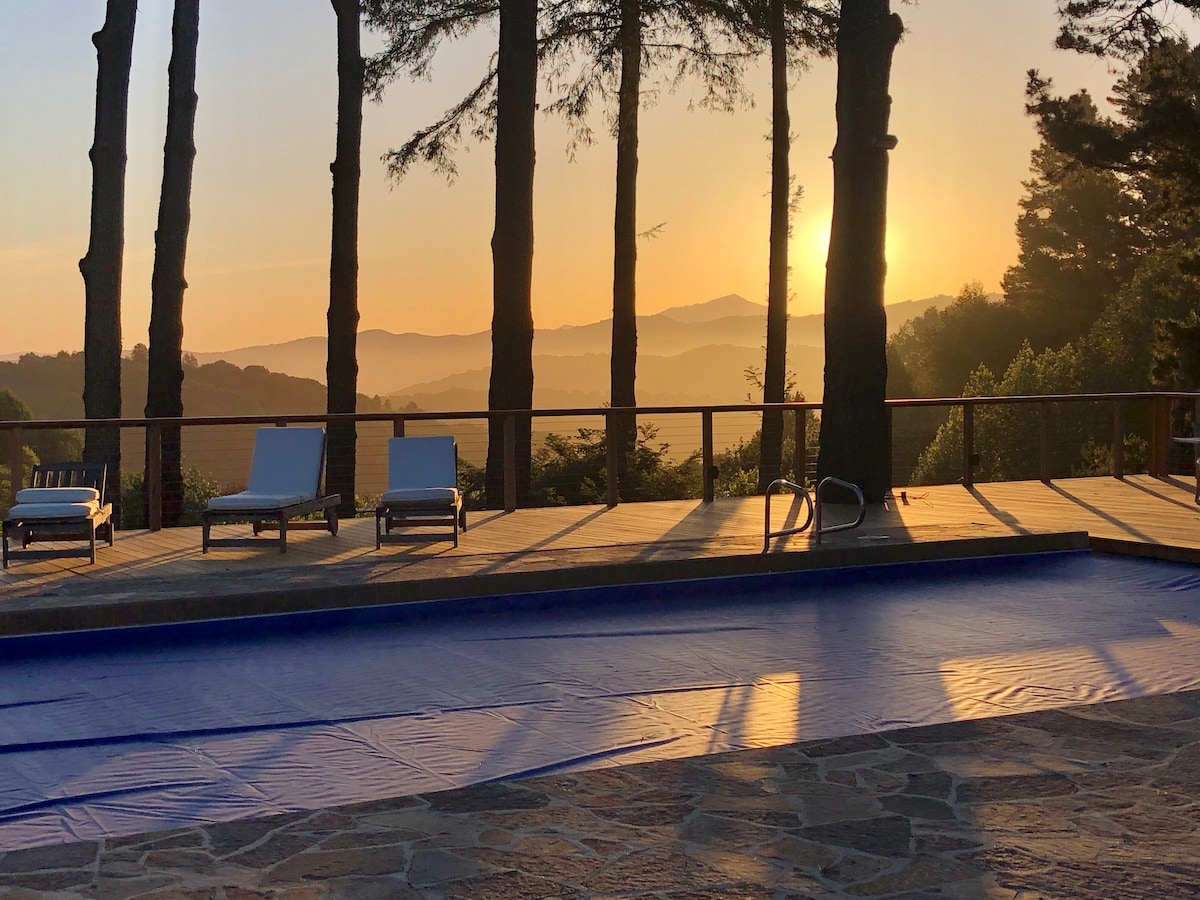 Stunning, ADU cottage w/ higher end finishes. Endless VIEWS of mountains set on a beautiful, peaceful, upscale gated, property surrounded by redwood, pine & oak trees. 1 mile to large regional parks for hiking, mountain biking and horse stables. Nature at its best! Pool heated May 31st to October 30th. 16 miles to San Francisco, 5-10 minutes to many restaurants. New Jacuzzi and outdoor sauna. Large patio, pool / deck (6500 sq foot outdoor oasis shared with main house with a small family of 4)