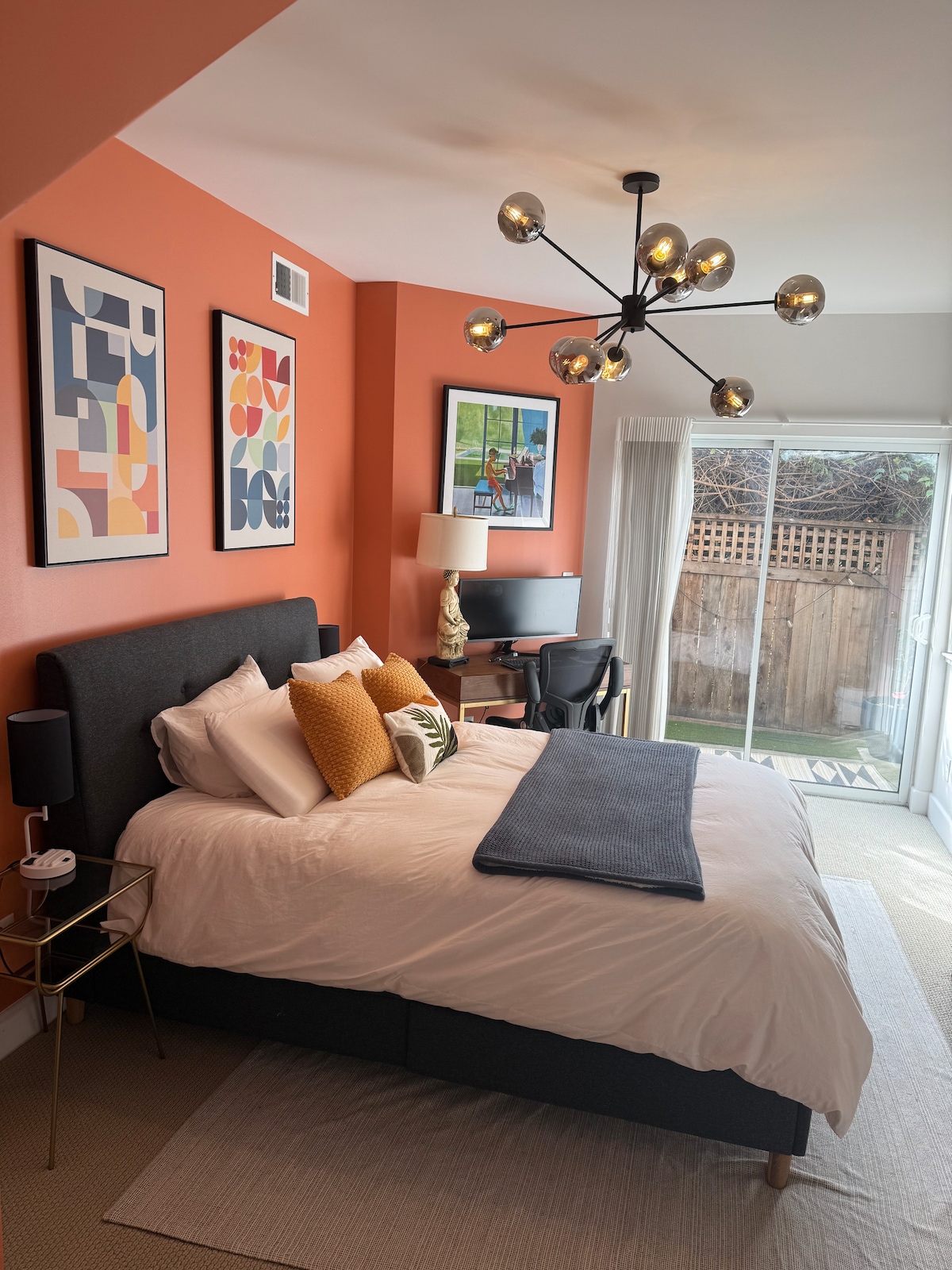 1500-sq. ft. LEED luxury townhome centrally located in Rockridge and close distance to all the restaurants in Temescal and UC Berkeley. 3 floors with two Bedrooms, memory foam mattresses with Egyptian Cotton bedsheets in the Master. Bosch appliances, air purifiers are available throughout the home, Kitchen equipped with Vitamix blender, All-clad cookware, french press coffee maker and a sous vide circulator. TV Den on top floor has a 65 inch Smart TV. Outdoor area with views of the city.