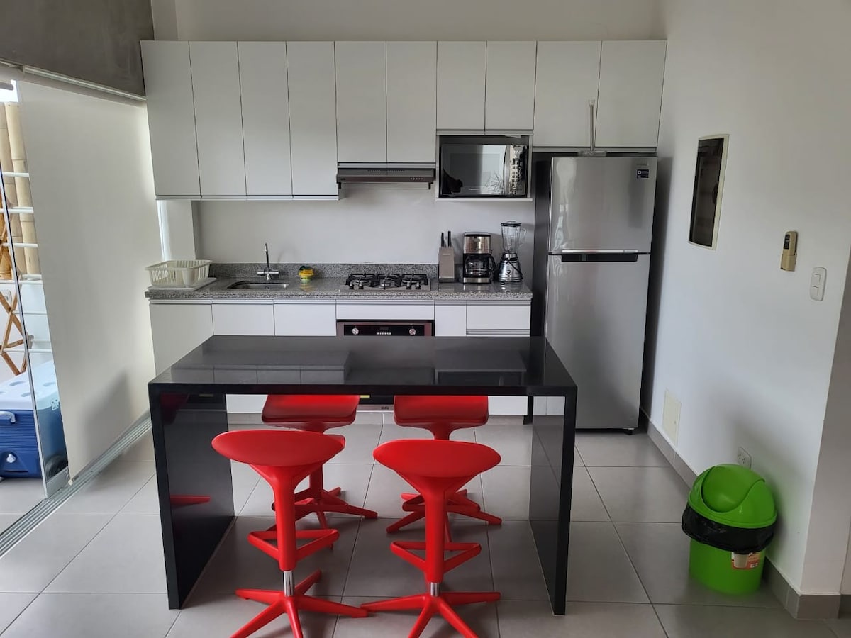 ¿Por qué conformarte con un pequeño departamento sólo para dormir? Mejor disfruta de un amplio departamento DUPLEX, diseñado con espacios para disfrutar tu estadía y vacaciones. Distribuido en dos pisos para separar las áreas de descanso de las áreas sociales. Cuenta dos amplios baños, terraza con privilegiada vista ideal para una parrillada o una caja china, aire acondicionado en las habitaciones, sala y comedor independientes. Ideal para familias pequeñas y amigos.