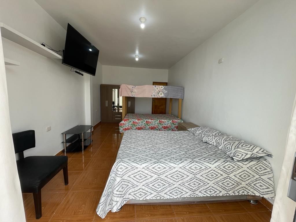 Se alquila solo la habitación, que es amplia y acogedora para dos personas, cuenta con todas las comodidades. Una cama de dos plazas,baño propio, ventilador, closet, Wifi, veladores, neveray Ventilador