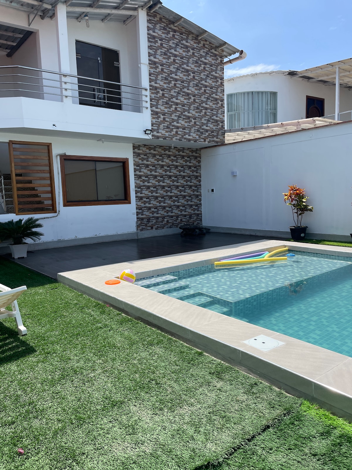 Disfruta de una estadía inolvidable en Sand House, casa completa, moderna, acogedora y totalmente equipada. Ideal para familias, parejas o grupos de amigos que buscan comodidad, privacidad y buena ubicación. Disfruta de una gran piscina privada para relajarte o divertirte en grupo con una parrillada al aire libre. Además, cuenta con cochera privada para 2 vehículos. Déjate llevar por el sonido de las olas y vive días de descanso junto a una de las playas más hermosas y tranquilas de Tumbes.