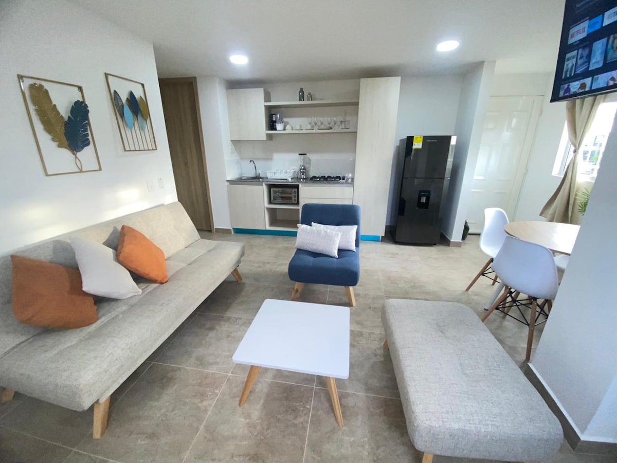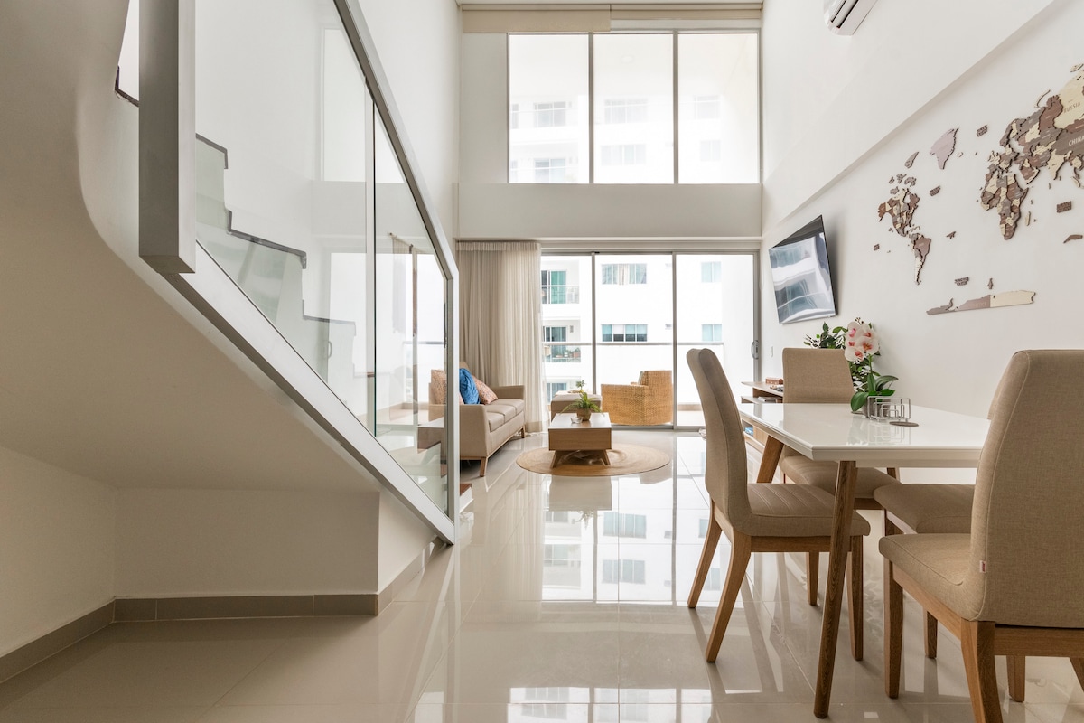 This apartment is perfect for couples looking for an exclusive place to stay, with everything within reach. It’s also suitable for older guests. The building is a residential tower located above a shopping center that has it all — supermarkets, restaurants, and stores. The apartment itself has an elegant style, thoughtfully designed down to the smallest detail. It's filled with Cartagena-inspired art and offers a spectacular view.