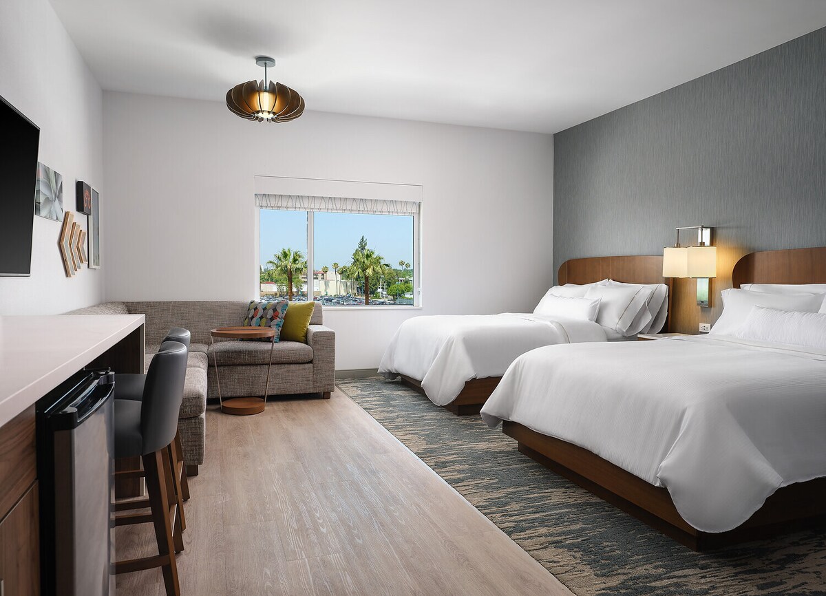 Just minutes from John Wayne Airport and close to Disneyland®, La Quinta Orange County Airport is ideally positioned for both leisure and business travel. This room with two queen beds includes a mini-refrigerator, microwave, coffee maker, desk, and HDTV for a convenient stay. You’ll benefit from complimentary breakfast, airport shuttle service, free self-parking, and access to the pool & hot tub.