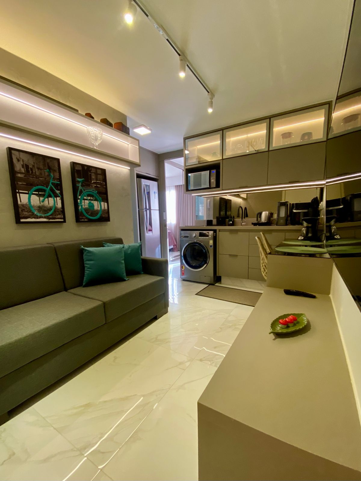 Studio sofisticado, aconchegante, decoração personalizada e varanda em 45m². Todos os itens para sua estadia. Ar-condicionado split, TV Smart, Wi-fi, máquina de lavar louças, Lava e Seca, adega, micro-ondas. Recepção 24h, lavanderia e uma vaga coberta. Na parte externa do prédio padaria para o café da manhã, farmácia, um bistrô, academia. Mercado próximo à 200m e outras opções de gastronomia. Noroeste é um bairro de alto padrão em Brasília. Fica a 6 km do Congresso. 23 km do Aeroporto.
